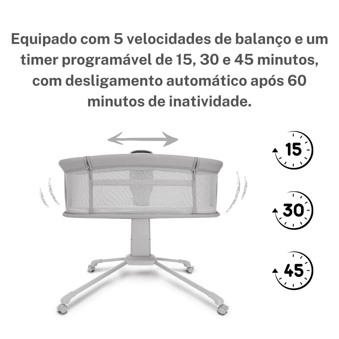 •Balanço Automático: Equipado com 5 velocidades avançadas e um timer programável, oferece o embalo ideal para o sono tranquilo do bebê.