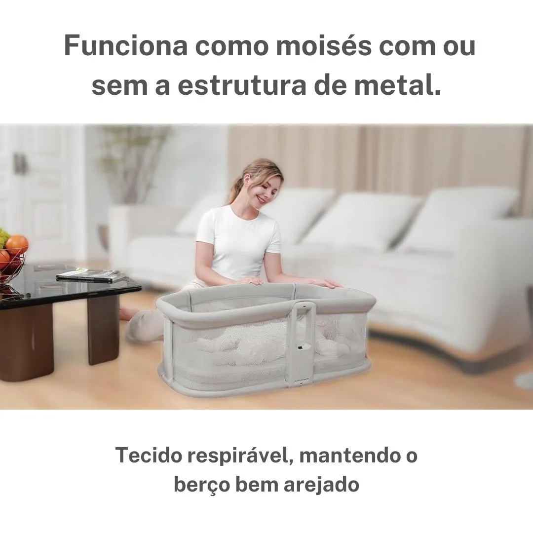 •Design Compacto e Funcional: Combina estrutura robusta em metal com tecido macio, ideal para o conforto do bebê.