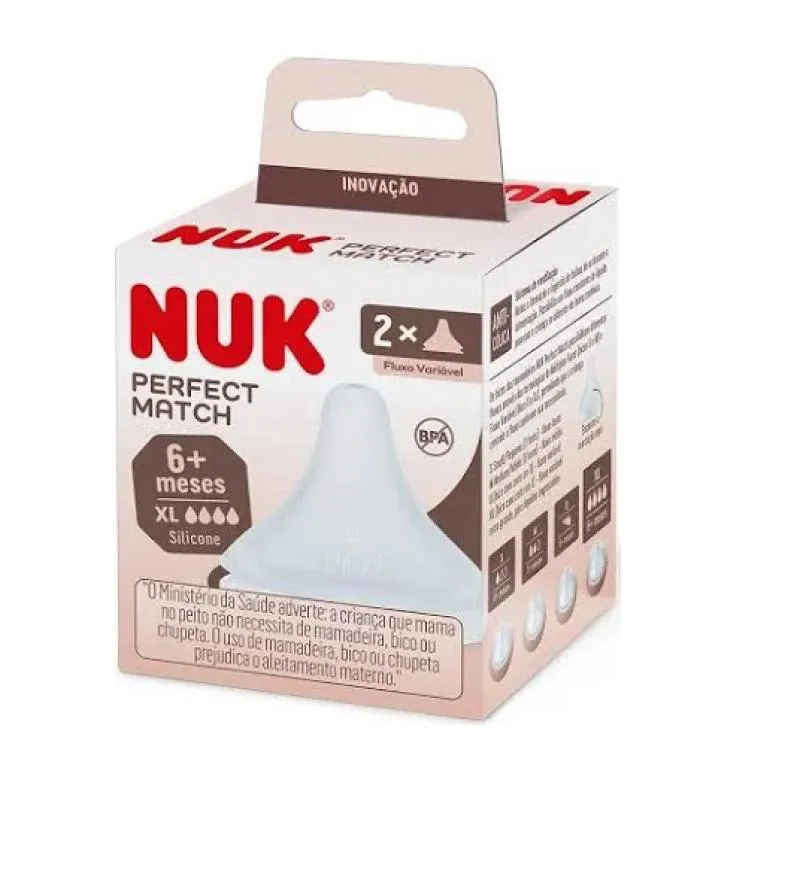 Bico Nuk Perfect Match +6M Silicone Fluxo Variável Xl 2Un