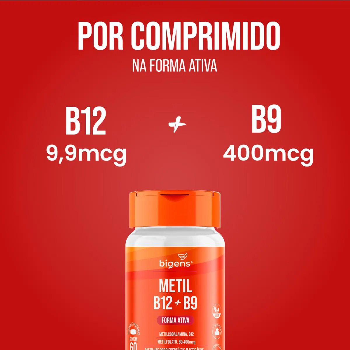 O Metil B12 + B9 da Bigens combina metilcobalamina e metilfolato, as formas ativas de vitamina B12 e B9, em práticas pastilhas mastigáveis com delicioso sabor morango