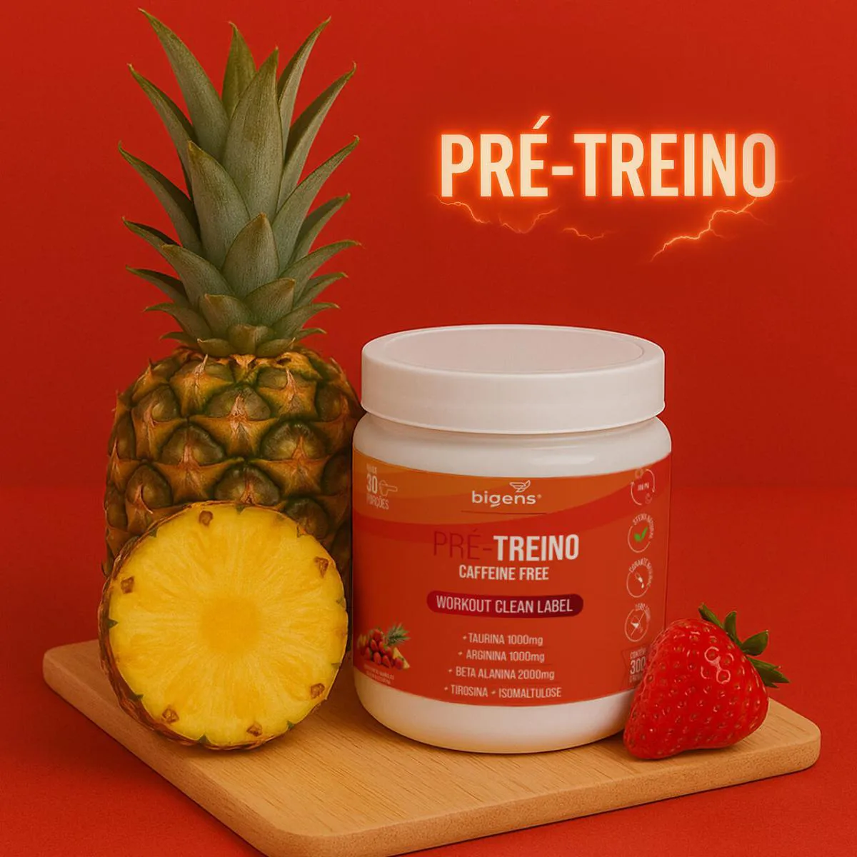 Pré-Treino Workout Clean Bigens – Sabor Morango com Abacaxi – 300g (30 porções) O Workout Clean da Bigens é um pré-treino desenvolvido com ingredientes de alta qualidade, livre de cafeína sintética, corantes artificiais e adoçantes químicos. É a escolha ideal para quem busca mais energia, foco e desempenho com uma fórmula limpa, eficaz e segura para o uso diário. Sua fórmula combina compostos como L-Arginina, Beta-Alanina, L-Tirosina, Taurina e Isomaltulose, que proporcionam energia de liberação gradual, resistência física e foco mental para treinos intensos, sem causar agitação. Diferente dos pré-treinos convencionais, não contém cafeína sintética, permitindo o consumo em qualquer horário do dia — inclusive à noite — sem interferir no sono. Caso deseje um estímulo extra, pode ser combinado com café coado, oferecendo uma forma mais natural de energia. O sabor Morango com Abacaxi é leve, refrescante e saboroso. Adoçado naturalmente com stevia e colorido com corante natural de beterraba, é perfeito para quem valoriza a pureza e qualidade nos suplementos. Sugestão de uso: Diluir 10g (2 medidas dosadoras) em 200ml de água gelada ou suco de sua preferência.