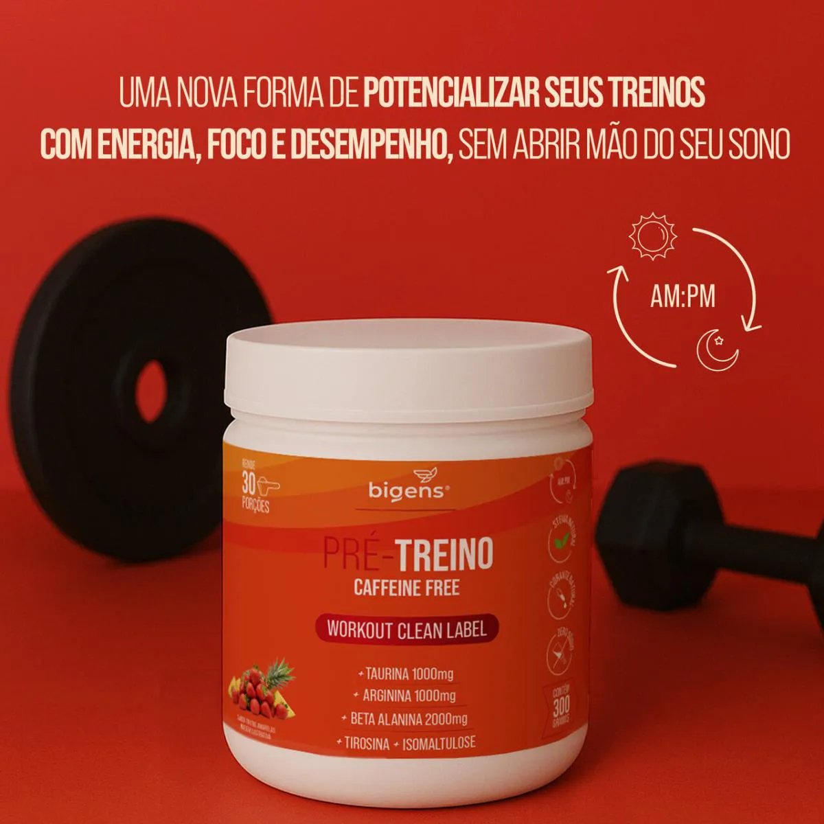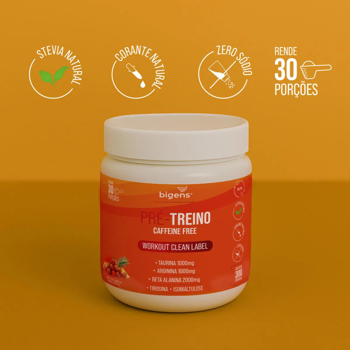 Bigens Pré-treino Caffeine Free 300g Morango e Abacaxi