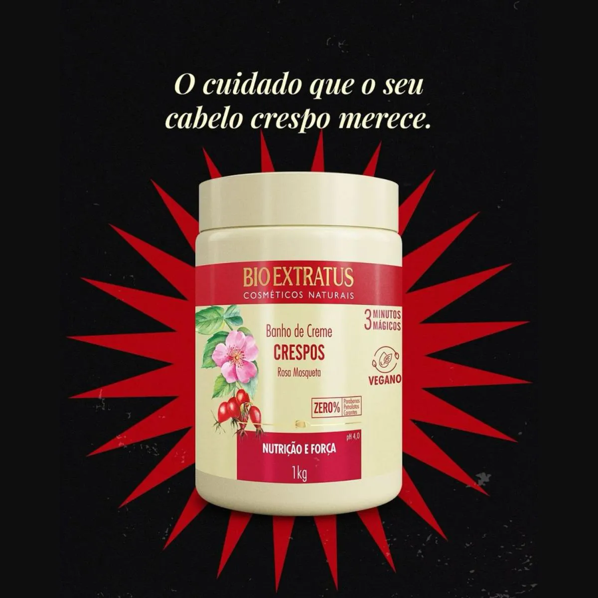 banho de Creme Cabelos Crespos Rosa Mosqueta 1kg – Bio Extratus