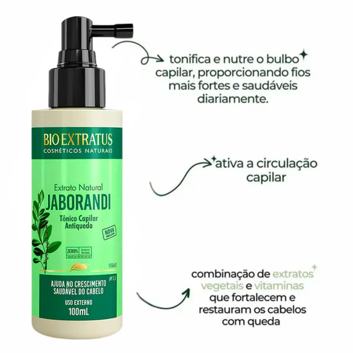 A força que seu cabelo precisa diretamente no couro cabeludo. A Loção Antiqueda Bio Extratus com Jaborandi é um tratamento intensivo que combate a queda, estimula o crescimento e fortalece os fios desde a raiz.