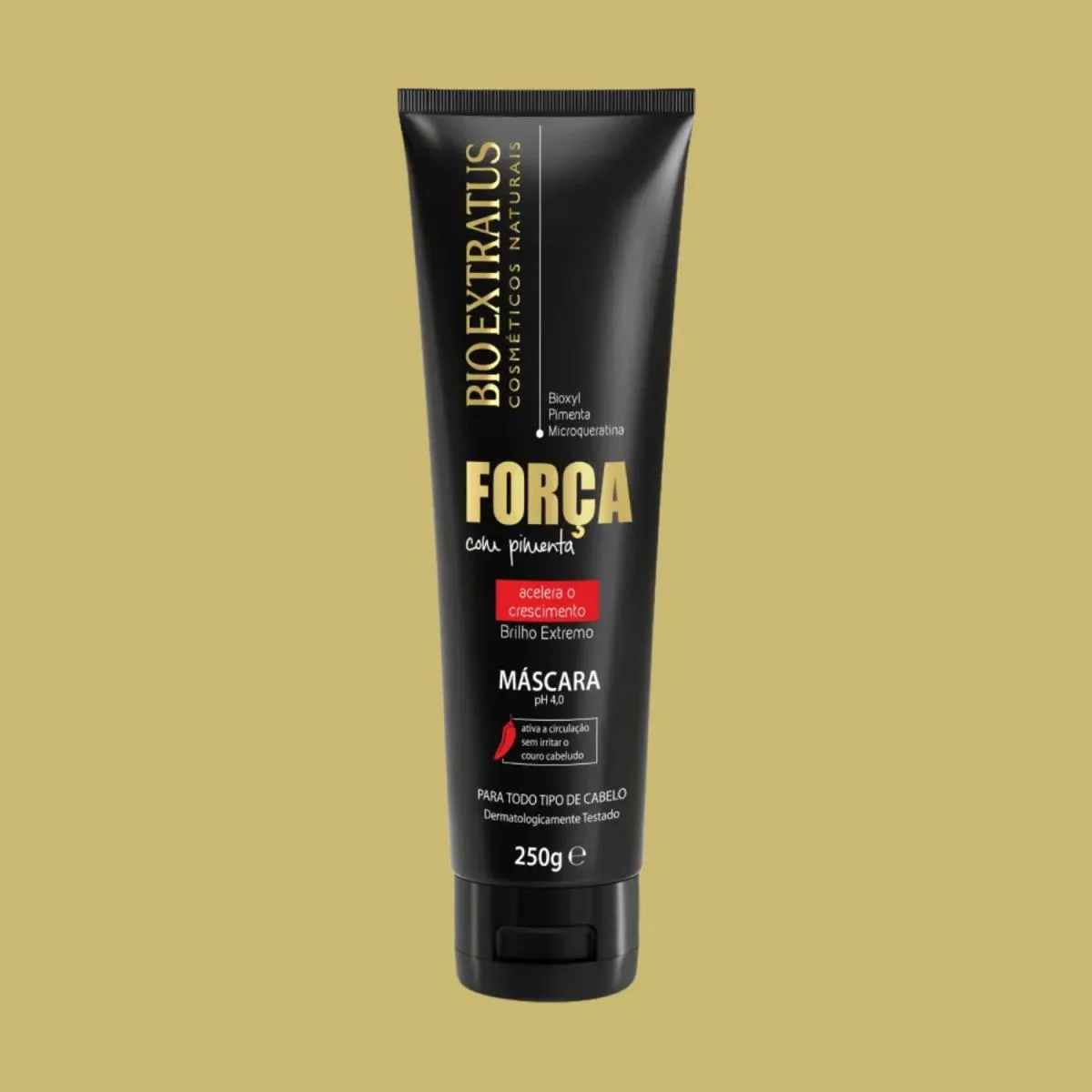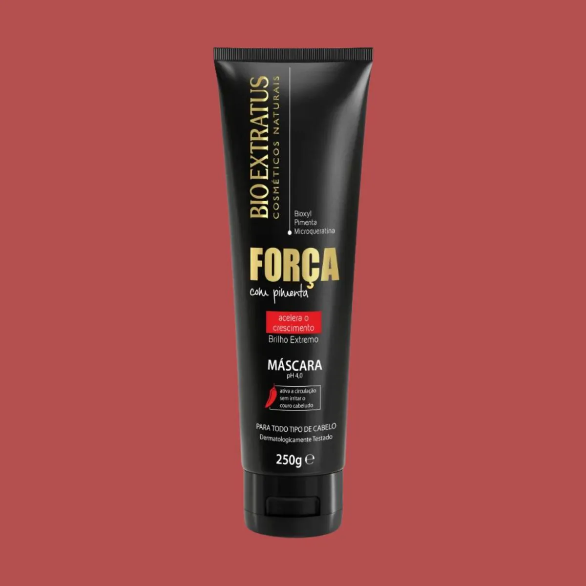 Revitalize seus cabelos com a força da pimenta! A Máscara Capilar Bio Extratus Força com Pimenta foi desenvolvida para proporcionar tratamento intenso, força e vitalidade aos fios. Sua fórmula com extrato de pimenta, microqueratina e bioxyl estimula a circulação no couro cabeludo, fortalece os fios e favorece o crescimento saudável, além de garantir brilho e maciez.