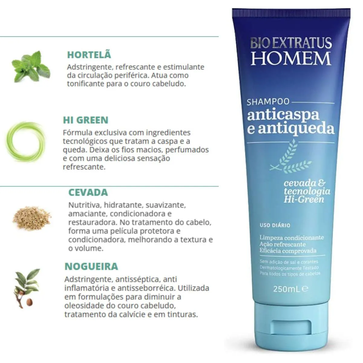 shampoo anticaspa e antiqueda Homem 250ml – Bio Extratus