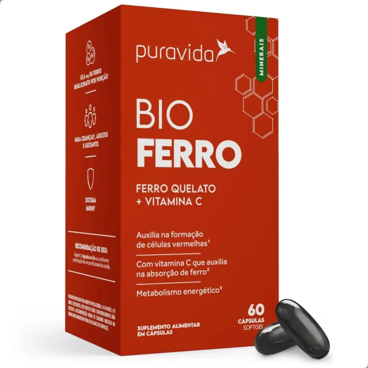 Bio Ferro Quelato e Vitamina C 60 Capsulas Pura Vida Natural
