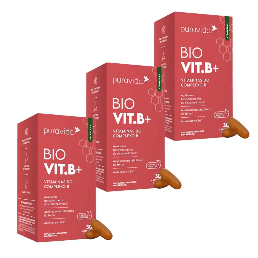 Bio Vit B+ Pura Vida 30 Cps - Complexo B Kit com 3 Unid