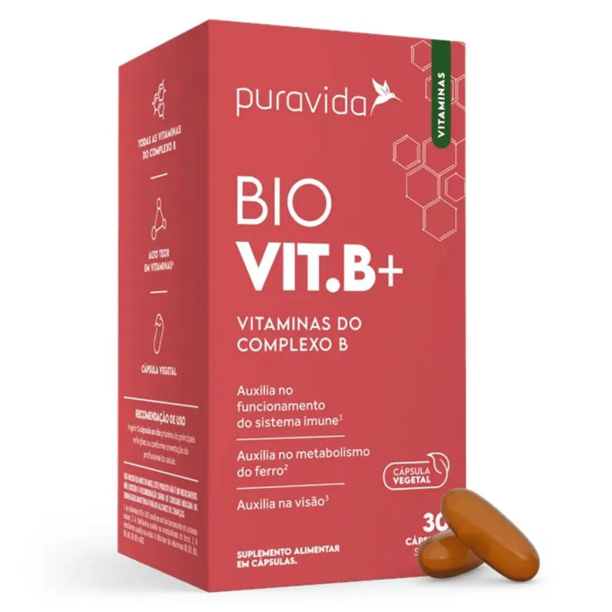 Bio Vit B+ Pura Vida é um suplemento completo de vitaminas do complexo B em formas biodisponíveis e ativas.
