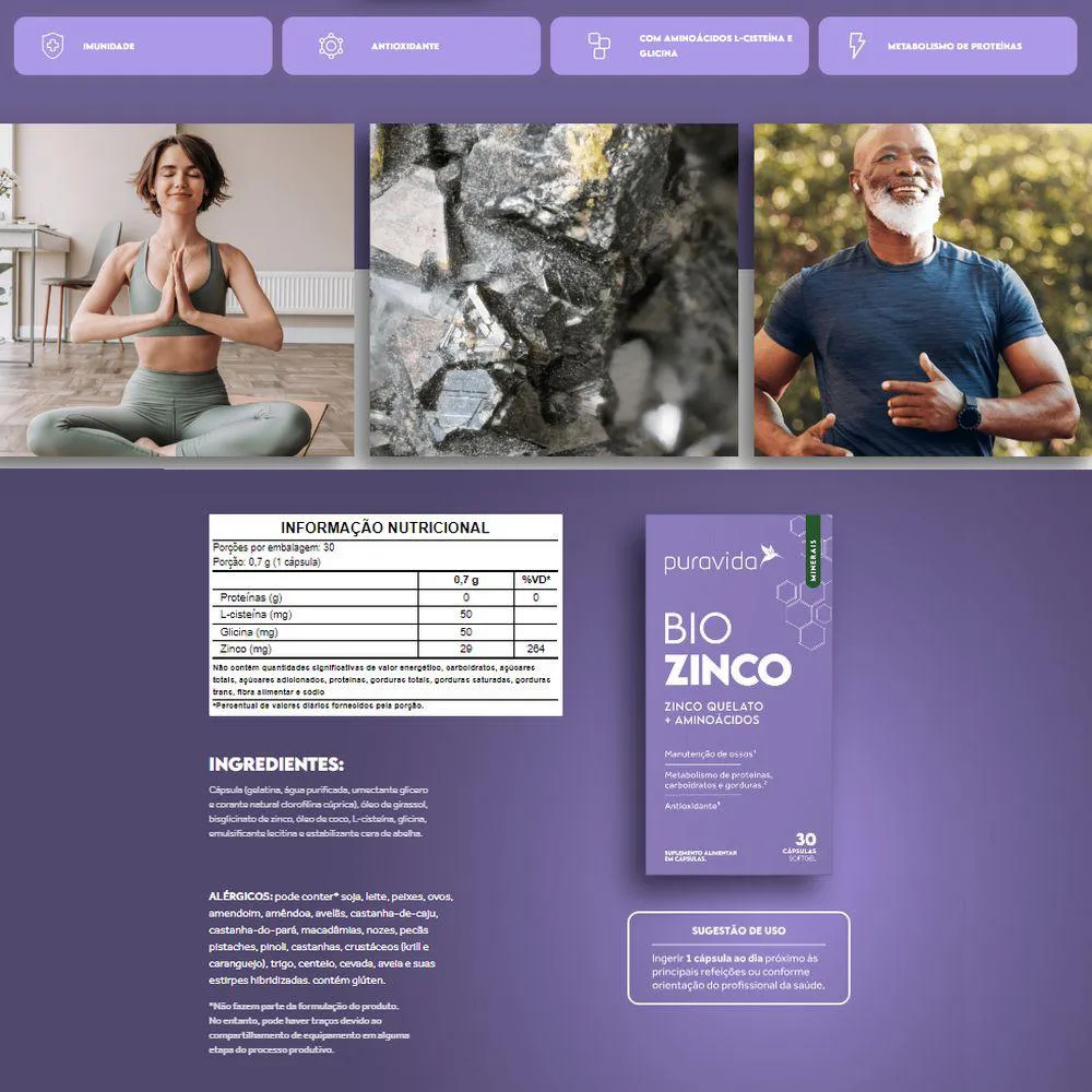 BIO ZINCO COM AMINOáCIDOS + ZINCO QUELATO - PURA VIDA