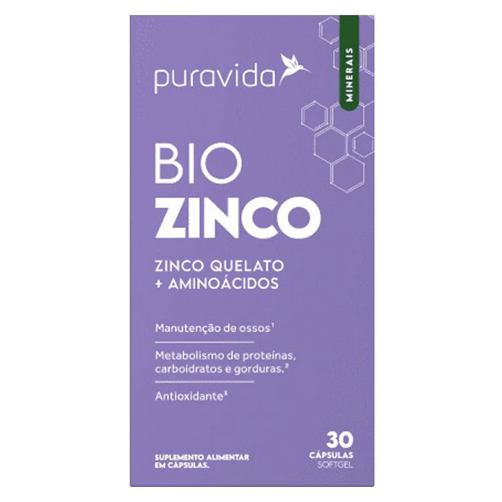 O Bio Zinco Puravida é um suplemento alimentar com alto teor de zinco, além de conter aminoácidos l-cisteína e glicina. Este nutriente é necessário para a atividade de mais de 300 enzimas no corpo humano.