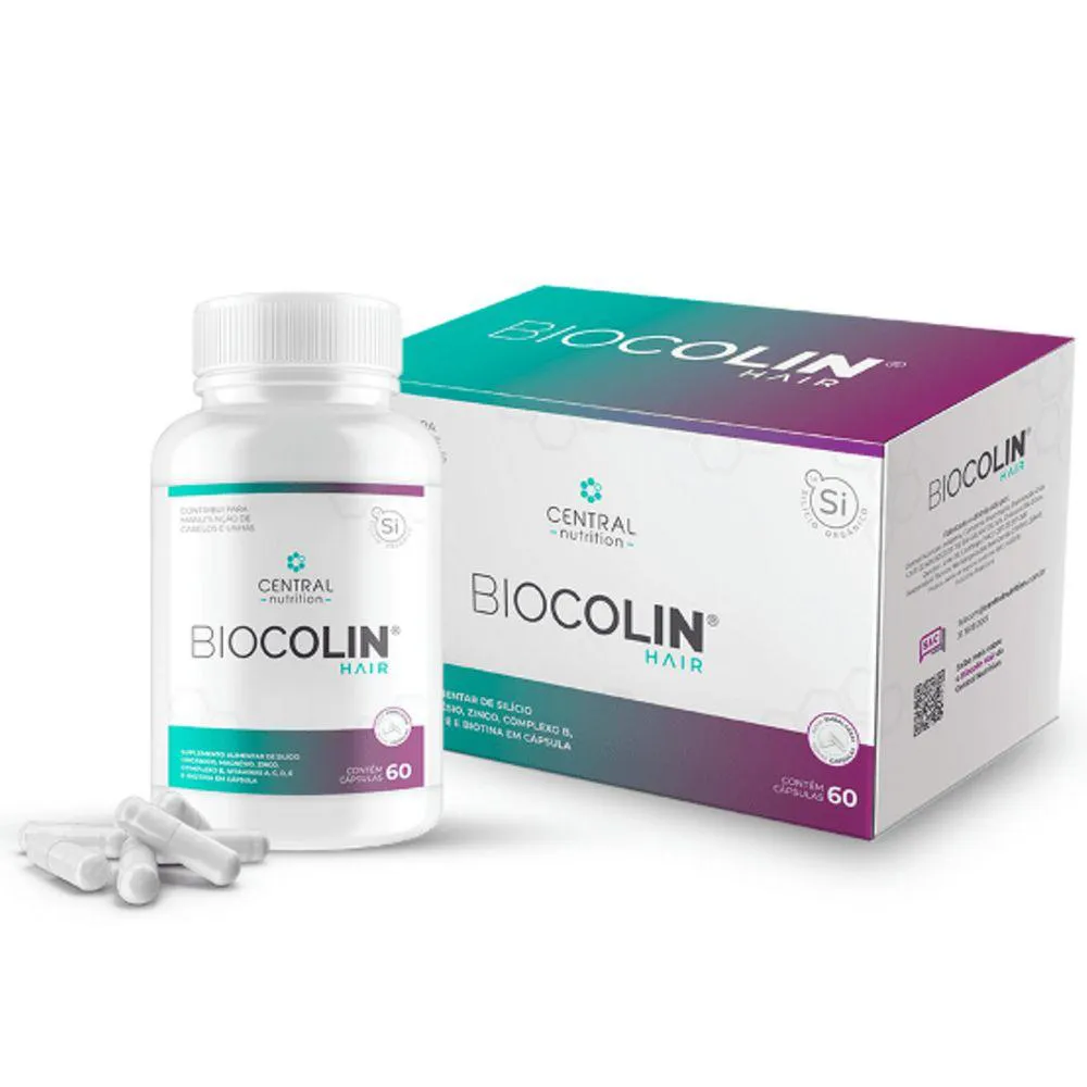 Composto pelas vitaminas A, C, D, biotina, ácido fólico, vitamina B6, B12 e outras vitaminas do complexo B, selênio, silício orgânico, zinco, magnésio e Pantotenato de Cálcio, BIOCOLIN - HAIR é um suplemento completo
