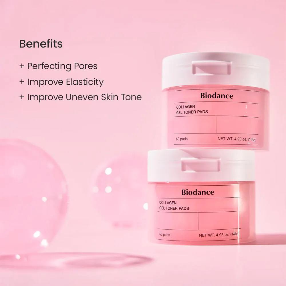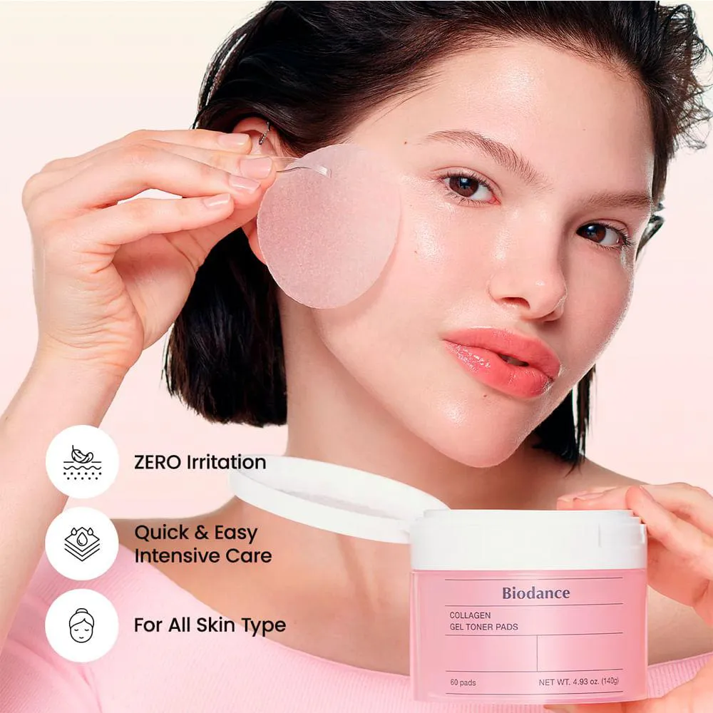 Biodance Collagen Gel Toner Pads são os pads tonificantes em gel para peles que buscam hidratação intensa, efeito lifting imediato e pele glowy radiante, com alta concentração de bio-colágeno que proporciona sensação de pele preenchida, firme e luminosa. Ideal para rotina diária de peles secas, desidratadas ou com linhas finas, esses pads multifuncionais limpam suavemente, tonificam, hidratam profundamente e preparam a pele para os próximos passos do skincare, transformando o cuidado matinal ou noturno em um ritual refrescante que eleva a confiança com pele mais hidratada, suave e cheia de vida.