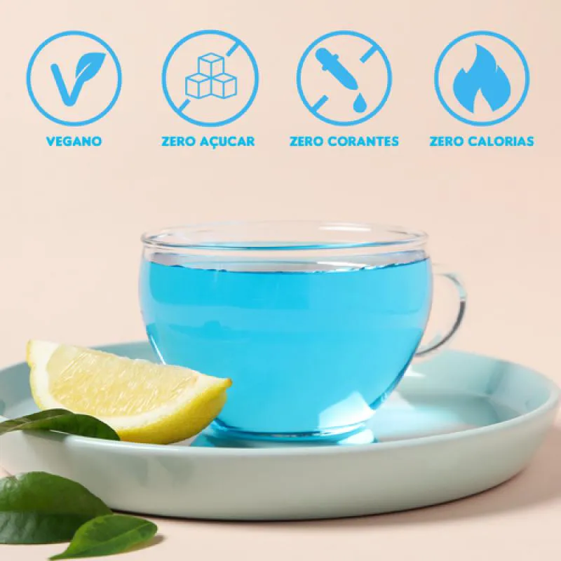 - Sabor limão e cor azul vibrante.