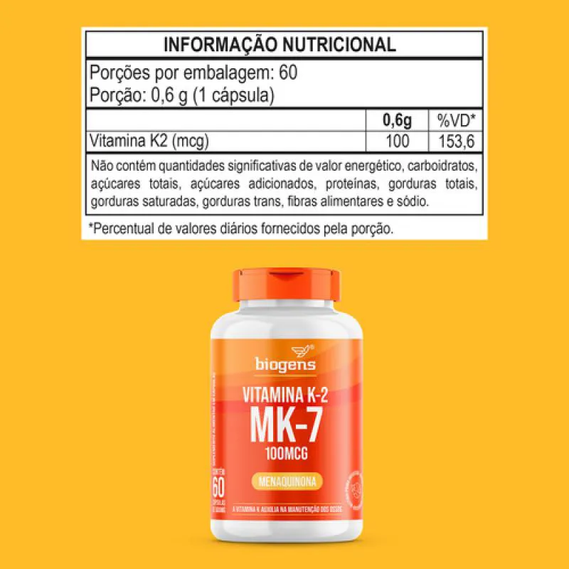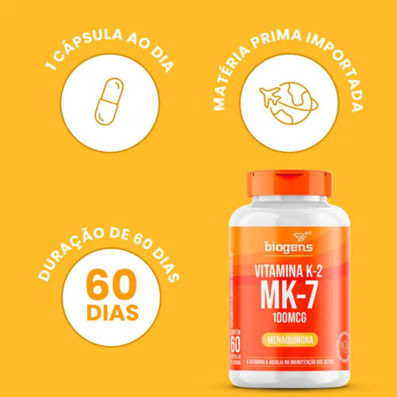 Vitamina K2 - MK7 entrega um suplemento superior aos comumente encontrados no mercado. Sua fórmula foi elaborada especificamente para a melhor absorção no organismo, com compostos em sua forma mais biodisponível. Mas afinal, qual é a diferença entre a vitamina “K-2” e “K-2 MK-7”? Dentro da vitamina K2 existem diferentes variantes, de MK-4 a MK-13, dependendo do comprimento da cadeia lateral. A Vitamina K2 MK-7, na forma de menaquinona, é a mais biodisponível e com uma meia-vida longa na corrente sanguínea após a ingestão oral.