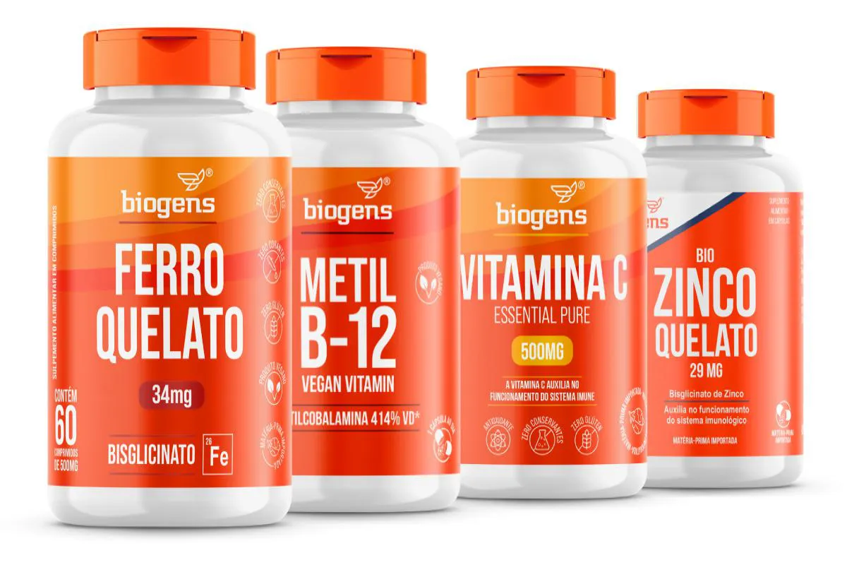 - Combina Ferro, Metil B12, Vitamina C e Zinco.