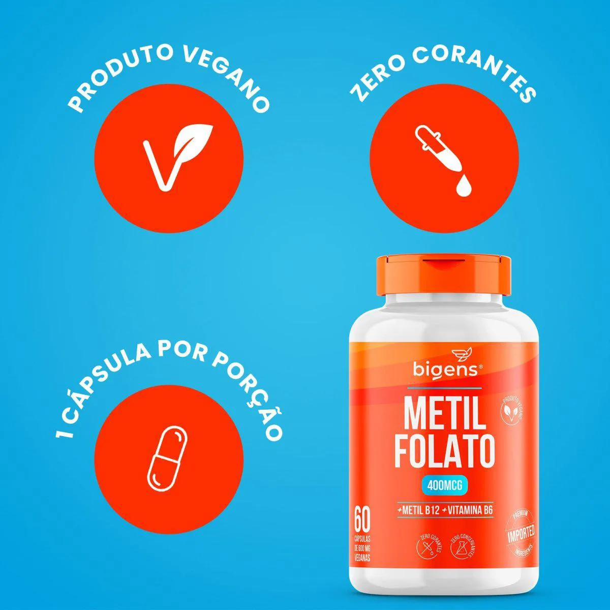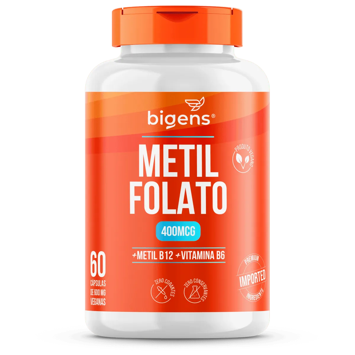 Metil Folato 400mcg (Metilfolato Ativo) Vitamina B9 – 60 Cápsulas Bigens