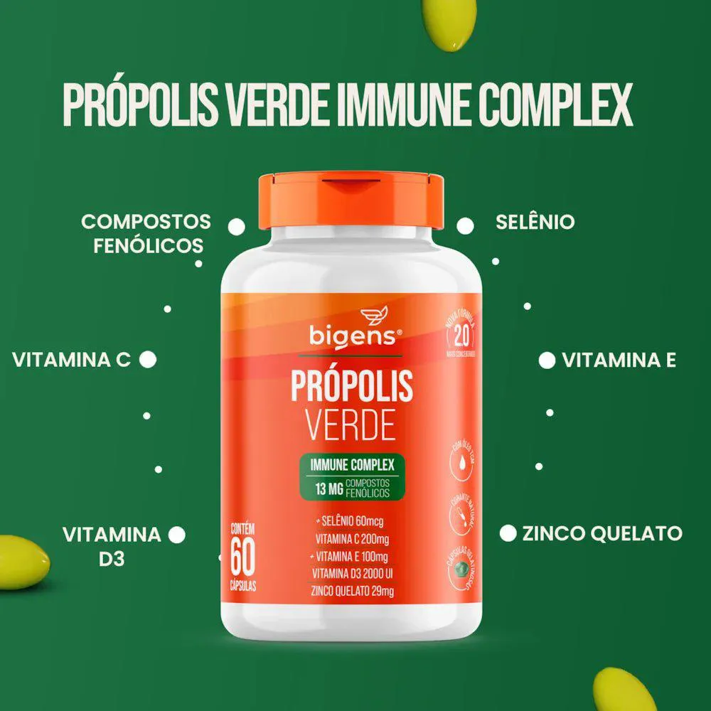 Própolis Verde, Immune Complex, 13mg Fenólicos + Vitaminas, Bigens