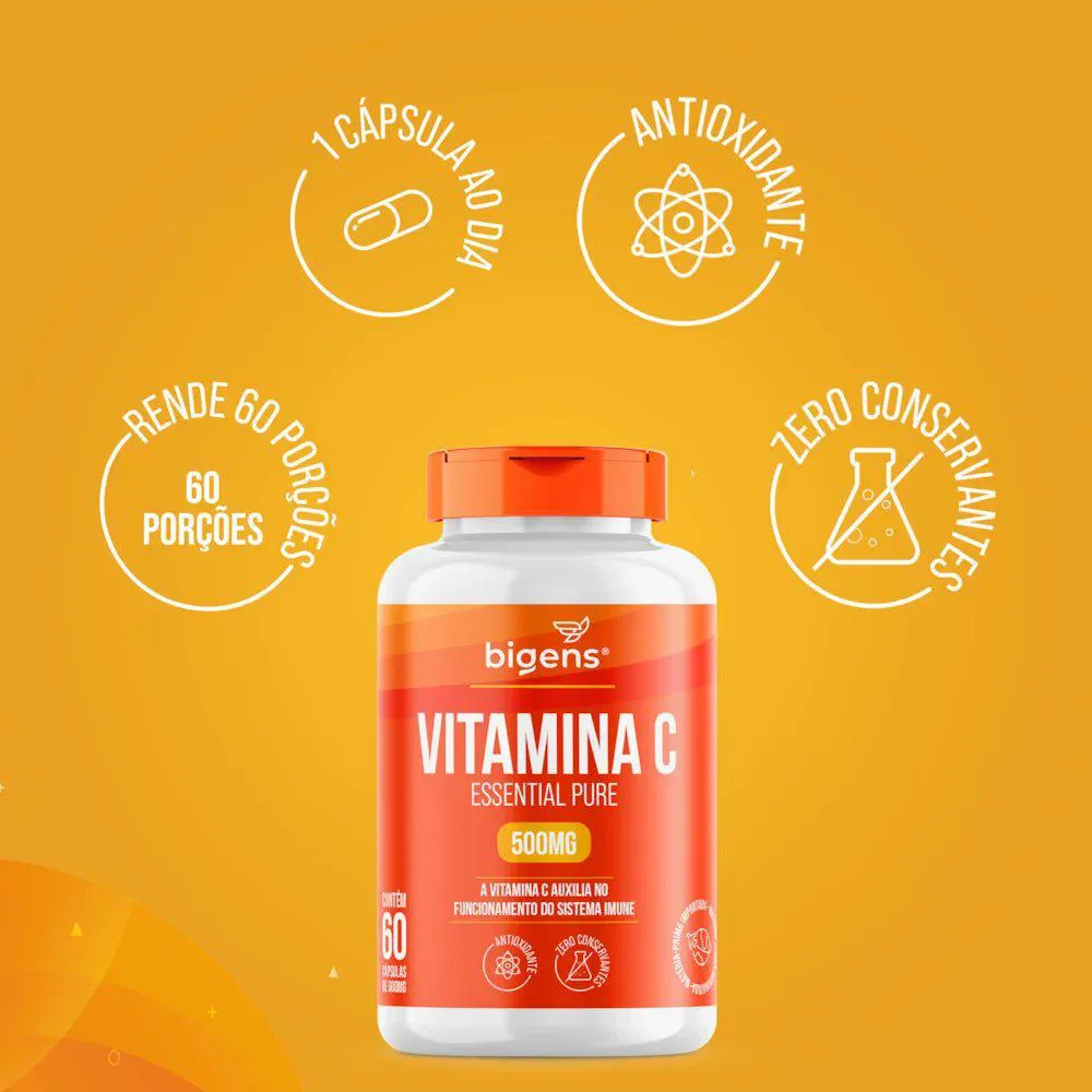 Vitamina C Essential Pure 500mg, 60 Cápsulas, Bigens