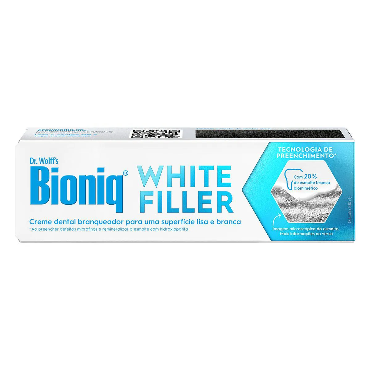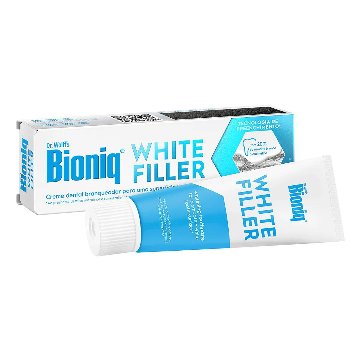 O Bioniq White Filler é um creme dental de uso diário que promove clareamento dental suave e eficaz, sem o uso de peróxidos ou abrasivos agressivos. Formulado com 20% de hidroxiapatita branca biomimética, o produto atua na reparação do esmalte, preenchendo microdefeitos, fortalecendo os dentes e proporcionando uma aparência naturalmente mais clara ao longo do tempo.