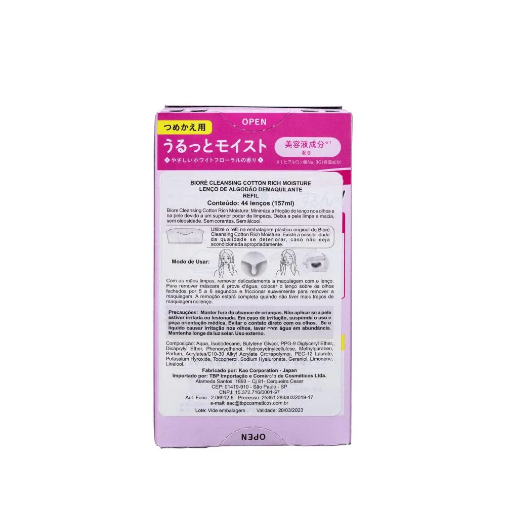 Refil de lenço demaquilante. Bioré Make Up Remover Cleansing Cotton Refil remove a maquiagem de forma delicada, minimizando o atrito nos olhos, cílios e no restante do rosto.