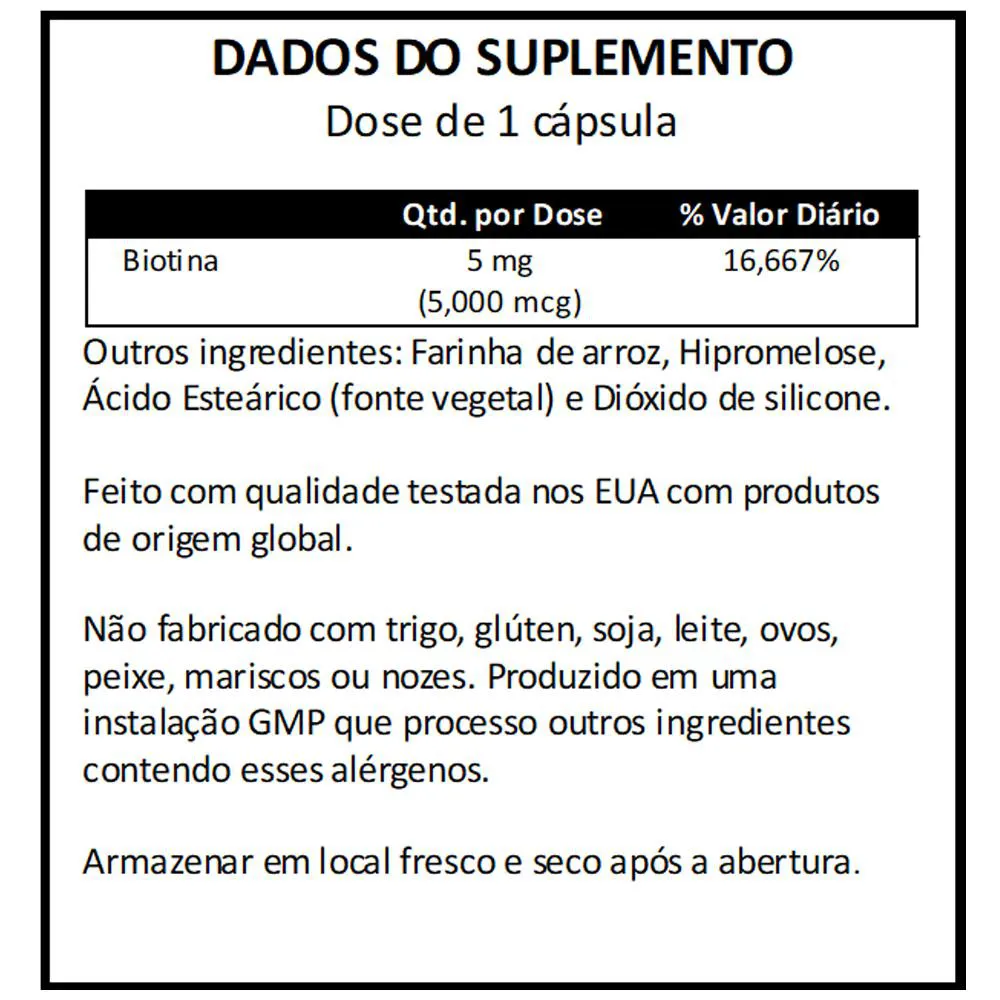Biotina 5000mcg Now Foods 120Veg Caps A biotina da Now Foods, disponível em cápsulas vegetarianas de 5000mg é uma vitamina indispensável para o crescimento normal e funções corporais. Apresenta suporte para funcionar como um elemento regulador chave na síntese de ácidos graxos e no metabolismo de alguns aminoácidos. Além de atuar na produção de energia, aumentando a síntese de certas proteínas e desempenhando um papel fundamental para o bem-estar de sua pele. Outros ingredientes: Hipromelose (cápsula de celulose), Dióxido de Silício e Ácido Esteárico (fonte vegetal). fabricado sem trigo, glúten, soja, milho, leite, ovo, peixe, marisco ou ingredientes de nozes. Recomendações de uso: Tome 1 cápsula por dia com uma refeição. Cuidados: Apenas para adultos. Busque orientação antes de utilizar este produto se estiver grávida ou amamentando. Mantenha fora do alcance de crianças. Armazenamento: Armazenar em local seco e fresco após a abertura. Pode ocorrer variação natural da cor neste produto. Conteúdo do frasco: 120 Cápsulas Vegetarianas VIDE VALIDADE Venda condicionada a existência de produto em estoque