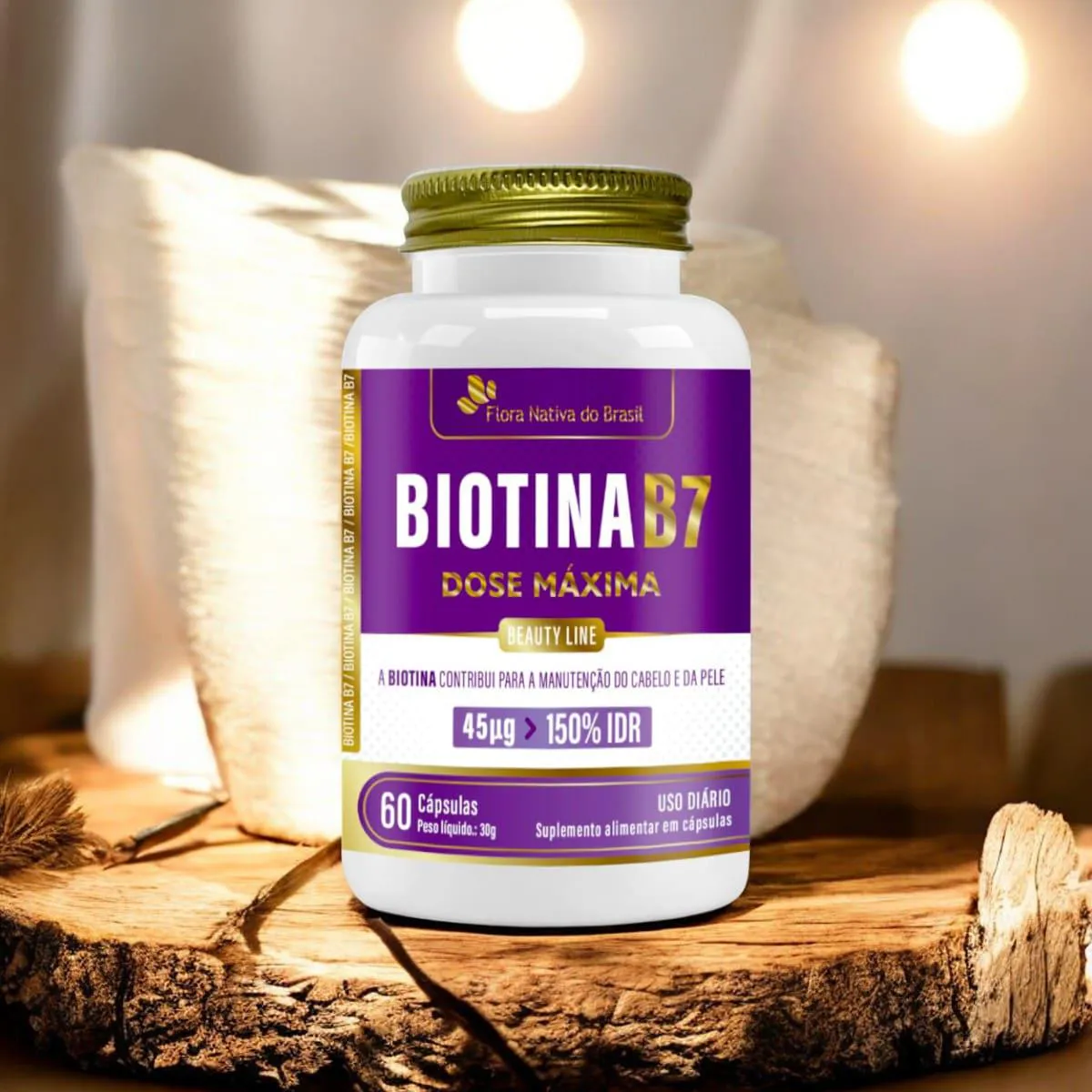 Biotina Vitamina B7 é um suplemento alimentar em cápsulas, desenvolvido para facilitar a inclusão de biotina na sua rotina. Cada embalagem contém 60 cápsulas, proporcionando uma dosagem prática e eficiente.