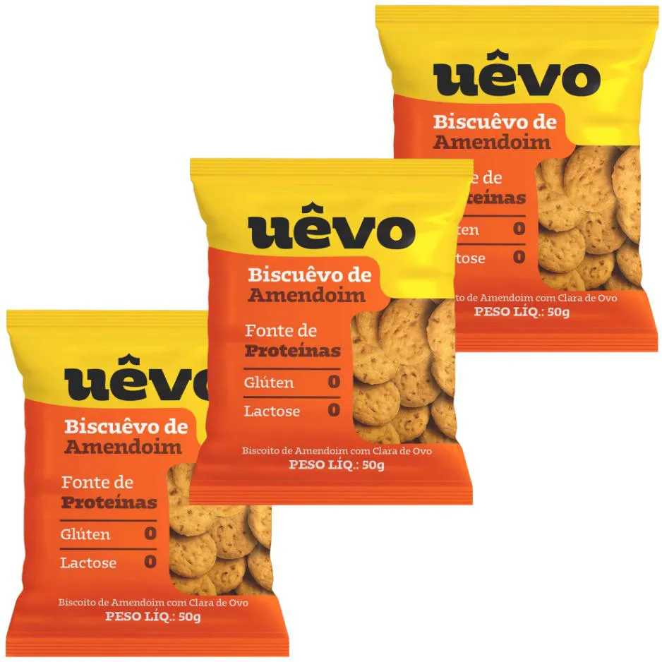 Biscuêvo ( Kit 3 Unid ) Biscoito Proteico Uevo 50G Amendoim