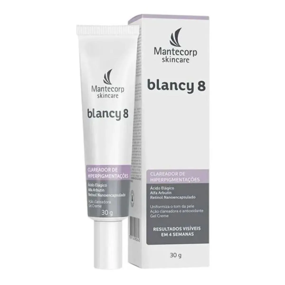 Gel Creme Clareador Mantecorp Blancy 8 30g - Uniformiza o Tom da Pele O Gel Creme Clareador Mantecorp Skincare Blancy 8 é um potente dermocosmético formulado para tratar hiperpigmentações, proporcionando uma pele mais uniforme e livre de manchas. Sua composição inclui ativos inovadores como Ácido Elágico, Alfa Arbutin e Retinol Nanoencapsulado, que atuam diretamente nas manchas escuras, promovendo um clareamento eficaz e duradouro. Sua textura em gel-creme é leve e ideal para todos os tipos de pele, inclusive oleosas. Com ação antioxidante, o produto também auxilia na prevenção do aparecimento de novas manchas. Resultados visíveis em apenas 4 semanas!