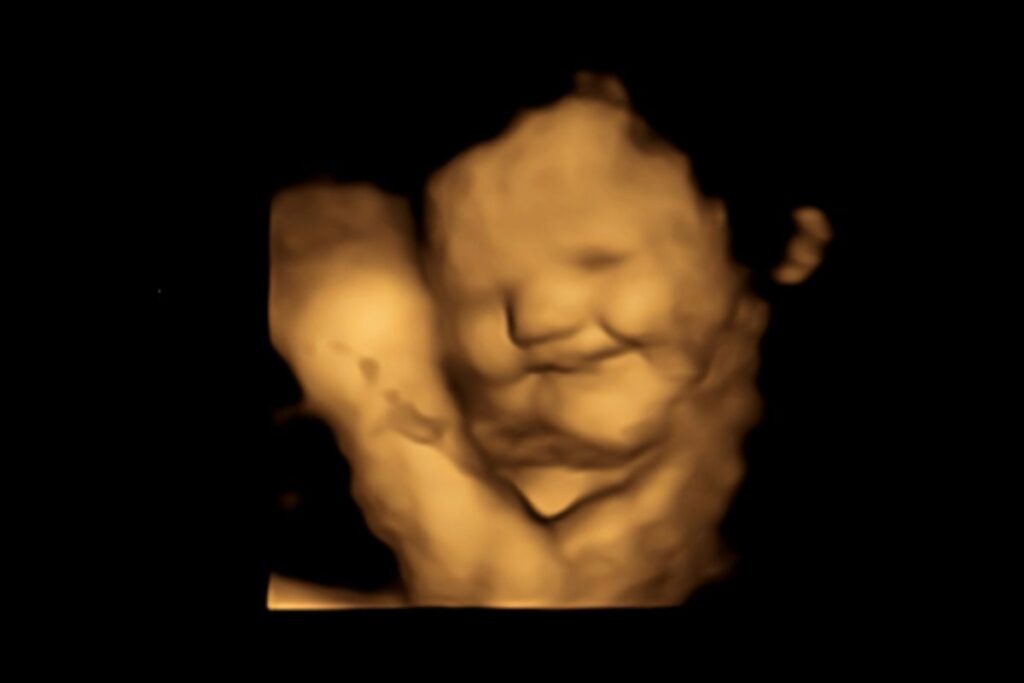Como dito anteriormente, os cientistas perceberam que no ultrassom 4D de grávidas que ingeriram a cápsula de cenoura, o bebê sorria diante do saber. Veja esse resultado na foto a seguir: