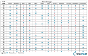 - Cruze os dados na tabela: Encontre a linha da sua idade lunar e a coluna do mês de concepção. A intersecção indicará “masculino” ou “feminino”.