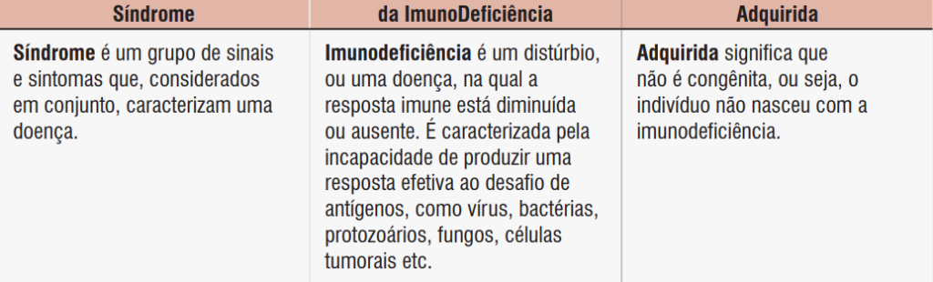 A AIDS é a sigla em inglês para a síndrome da imunodeficiência adquirida. O retrovírus HIV, responsável pela infecção sexualmente transmissível, ataca o sistema imunológico do nosso organismo. Como resultado, a pessoa fica vulnerável a qualquer doença e pode morrer até por causa de uma gripe. As células mais afetadas são os linfócitos T CD4+. O HIV altera os genes dessas células e se multiplica até comprometer a imunidade.