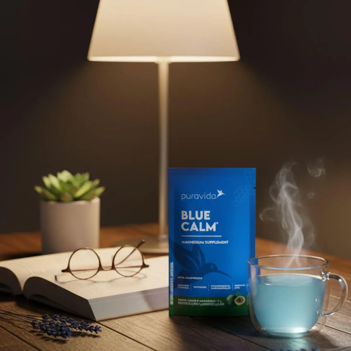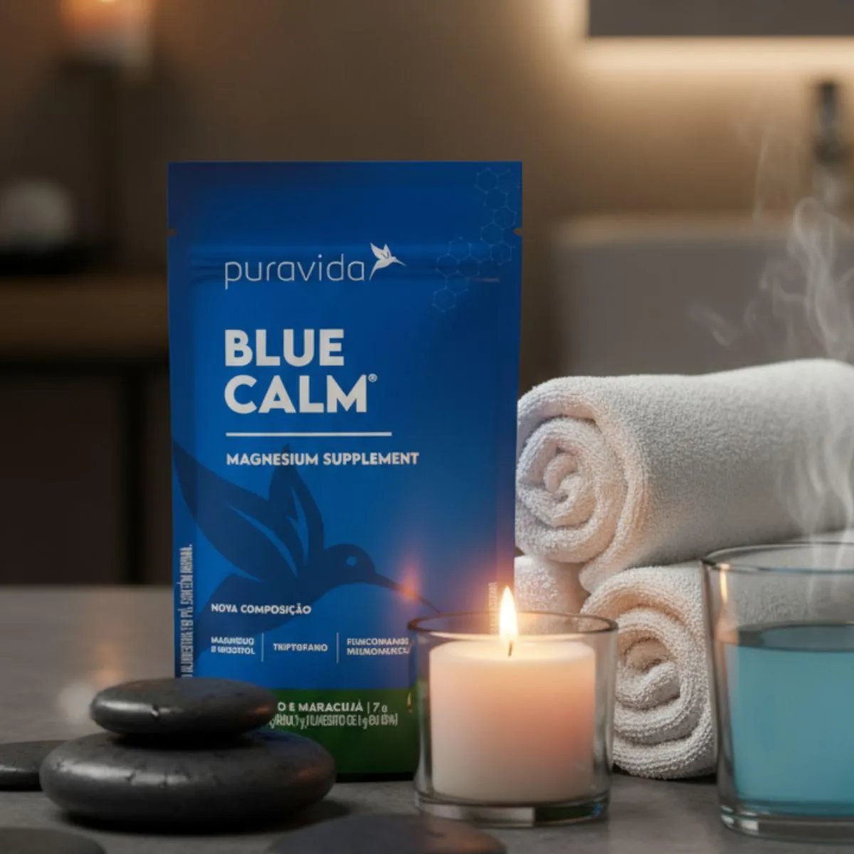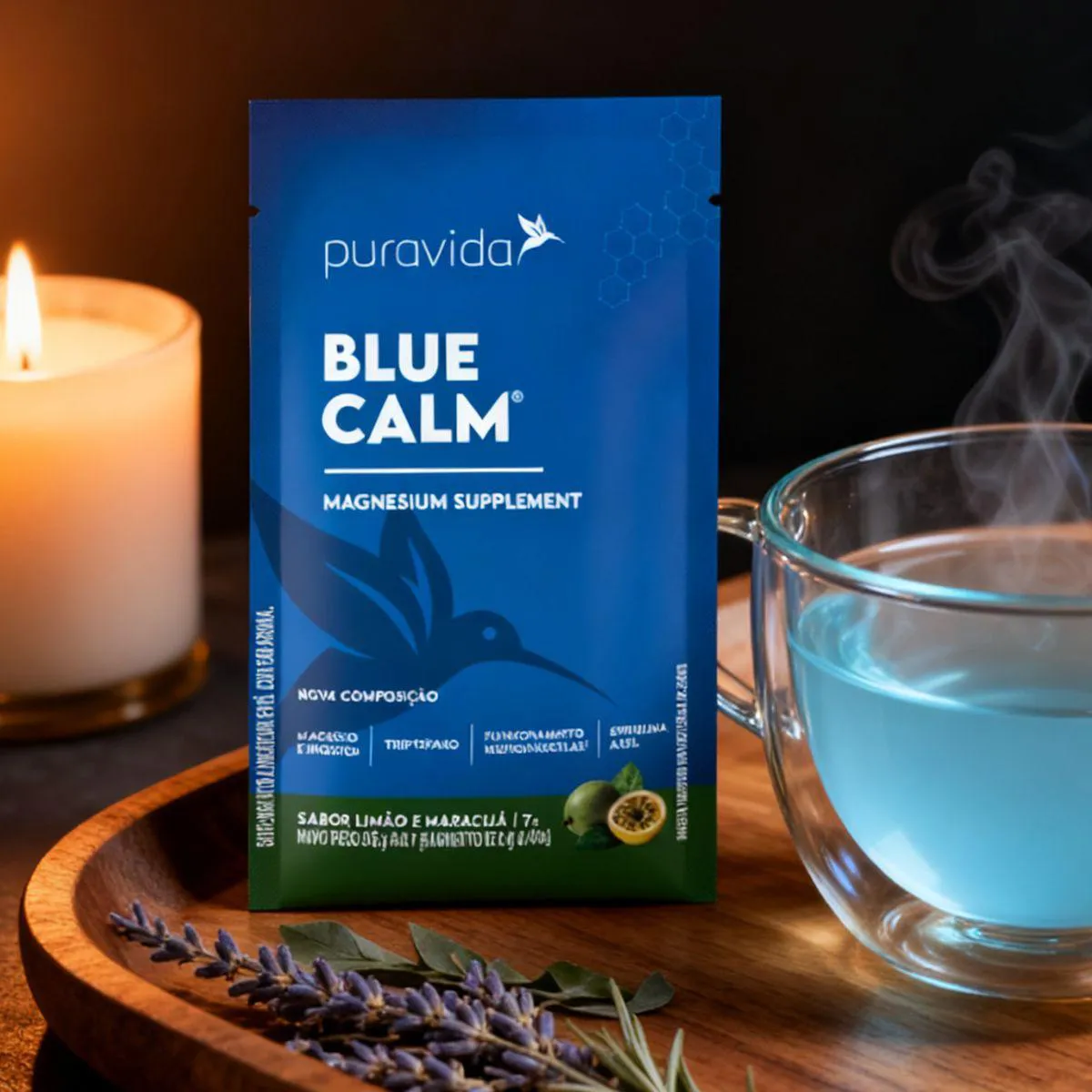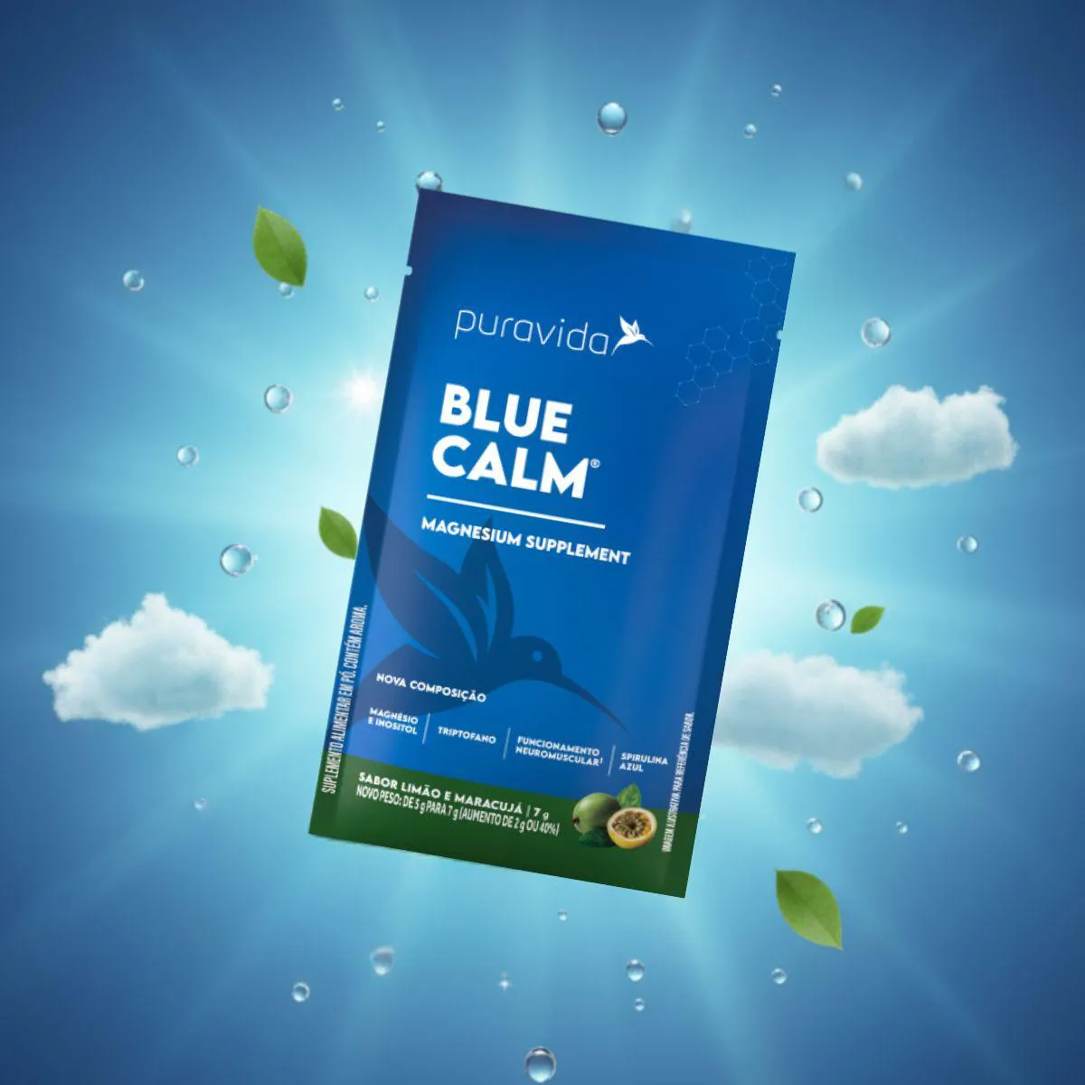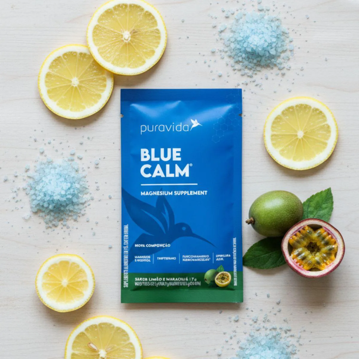 O Blue Calm Inositol Spirulina Azul é um suplemento em pó apresentado em sachês individuais, com fórmula vegana e textura fluida. Desenvolvido pela marca Pura Vida, o produto possui uma proposta clean label e design prático para consumo.