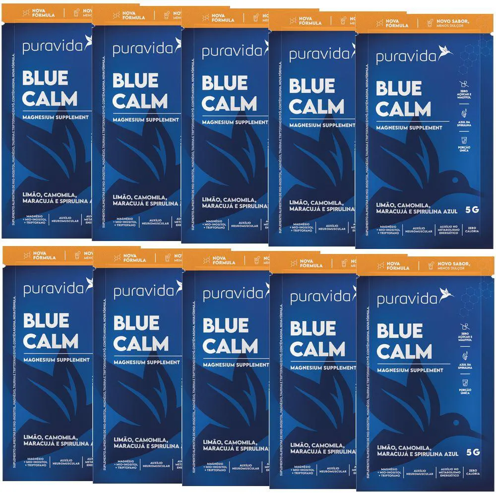 BLUE CALM PURAVIDA - KIT 10X SACHE 5G - LIMãO, CAMOMILA. MARACUJá E SPIRULINA AZUL
