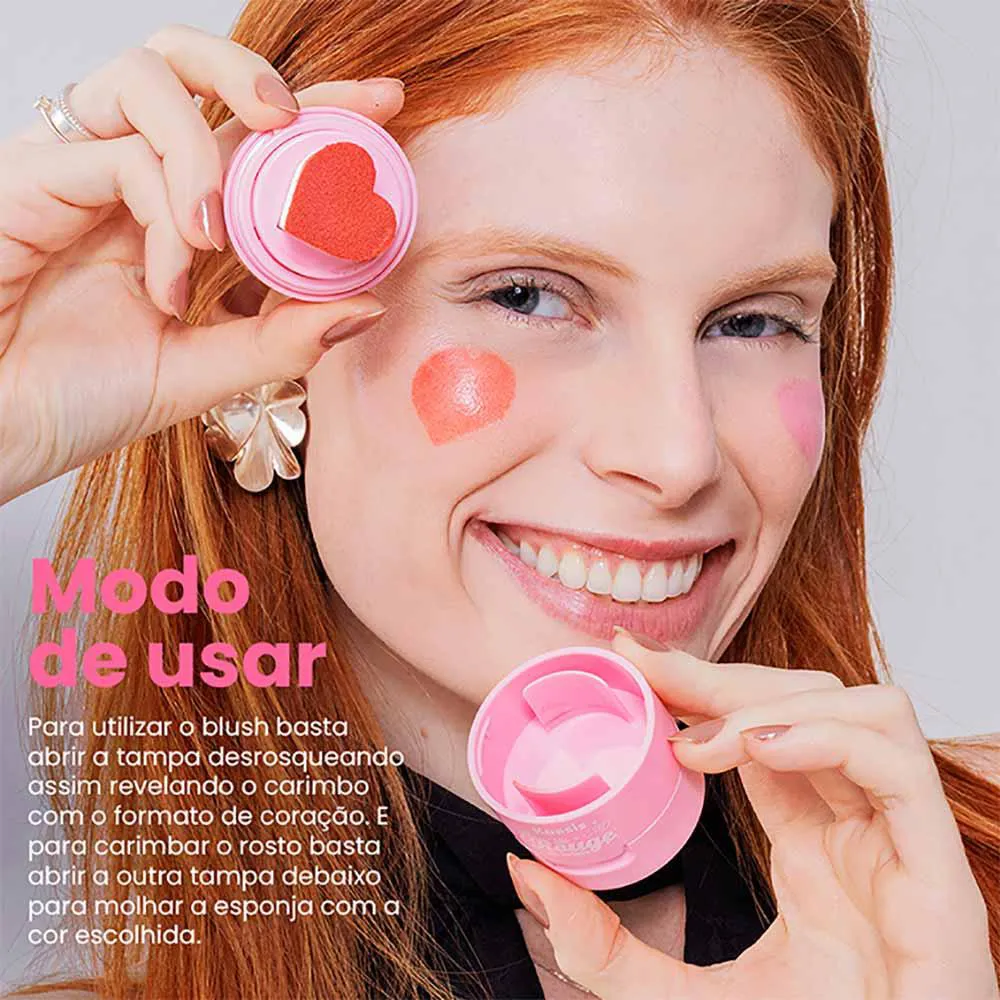 Este blush carimbo oferece praticidade na aplicação através da sua embalagem única em formato de coração. Basta pressionar levemente nas áreas desejadas para obter um acabamento homogêneo.