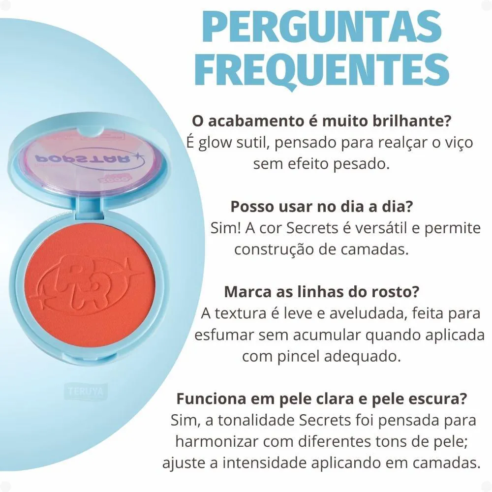 Para garantir a durabilidade e qualidade do produto, mantenha-o em local seco e arejado, longe da luz solar direta e do calor excessivo.Para remover o blush, utilize um
