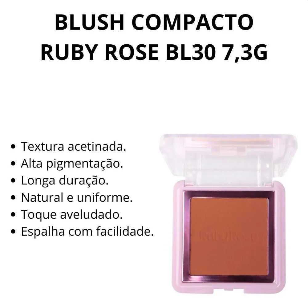 Blush Compacto Ruby Rose Textura Acetinada Bl30 7,3g