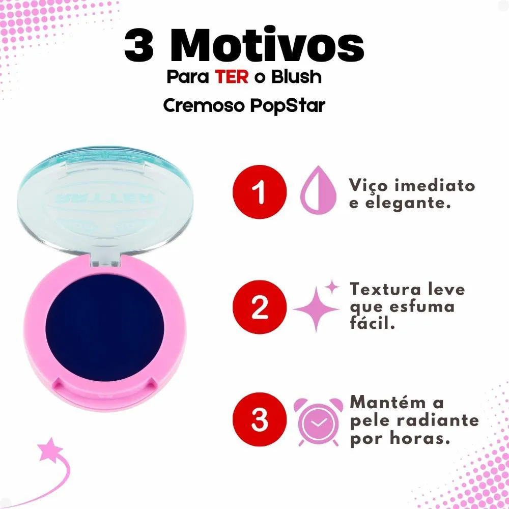 Aplique uma pequena quantidade do Blush Cremoso Ruby Rose Popstar Fame diretamente nas maçãs do rosto.Esfume delicadamente com as pontas dos dedos, uma esponja ou um pincel apropriado até obter o efeito desejado.Anvisa: 25351.014848/2025-23