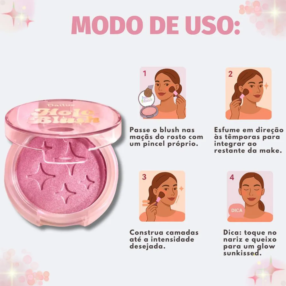 O Blush Iluminador Holográfico Dailus Holo Blush Pink é perfeito para diversas ocasiões, desde o uso diário para um toque de cor e brilho, até eventos especiais onde você deseja um look mais ousado e luminoso. Ideal para criar maquiagens artísticas, realçar as maçãs do rosto ou adicionar um ponto de luz nos olhos como sombra iridescente. Sua versatilidade permite que você explore sua criatividade e brilhe em qualquer momento.Modo de Uso/Aplicação