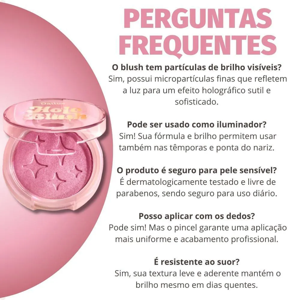 O Blush Iluminador Holográfico Dailus Holo Blush Pink é a escolha perfeita para quem busca um toque de brilho e cor vibrante. Este produto inovador da DAILUS oferece um acabamento radiante e um efeito holográfico deslumbrante, transformando sua maquiagem com alta pigmentação. Ideal para peles médias, ele realça a beleza natural e adiciona um glow único.Com o Holo Blush Pink, você pode criar looks versáteis e impactantes, seja para o dia a dia ou para ocasiões especiais. Sua fórmula de pó compacto proporciona uma aplicação suave e um resultado impecável, satisfazendo o desejo por uma maquiagem moderna e cheia de personalidade.Benefícios Principais