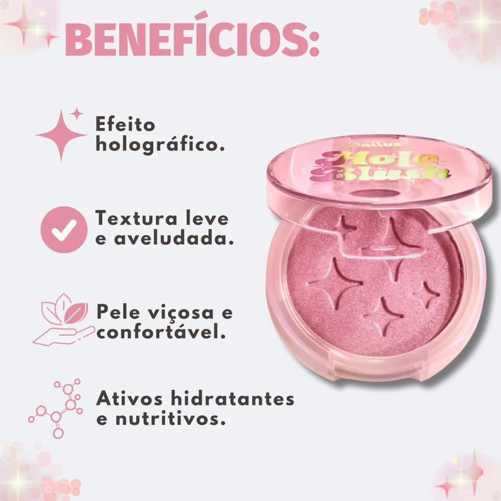 Descubra o segredo para uma pele radiante com o Blush Iluminador Holográfico Dailus Holo Blush Rosé. Este produto inovador da DAILUS oferece um toque de cor e um brilho multidimensional que transforma sua maquiagem, proporcionando um efeito luminoso e sofisticado. Ideal para quem busca realçar a beleza natural com um acabamento único e moderno, o Holo Blush Rosé é a escolha perfeita para um visual deslumbrante. Com sua tonalidade bege rosado holográfico, este blush iluminador é versátil e se adapta a diversos tons de pele, garantindo um glow saudável e impactante. Prepare-se para brilhar com um produto que une beleza e cuidado, elevando sua rotina de maquiagem a um novo nível.Benefícios Principais