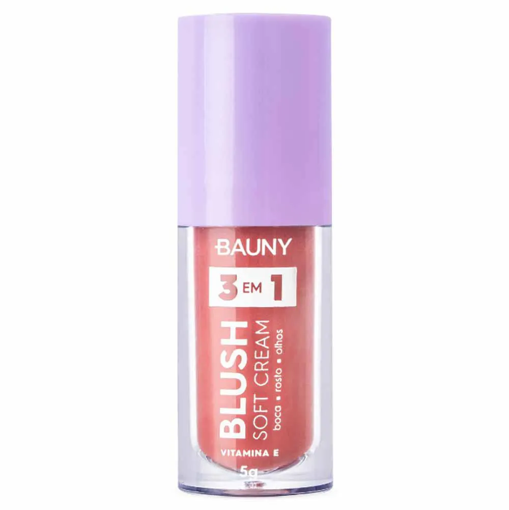 O Blush Líquido Bauny Soft Cream 3 em 1 este blush líquido é desenvolvido para proporcionar um acabamento natural e impecável, atuando como blush, batom e sombra.