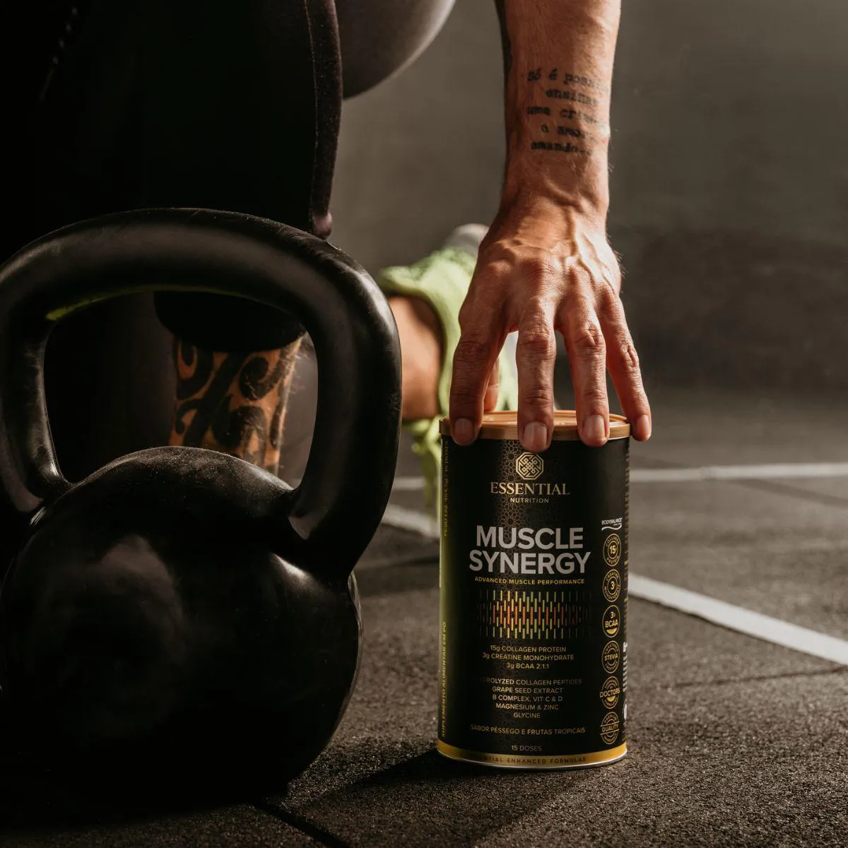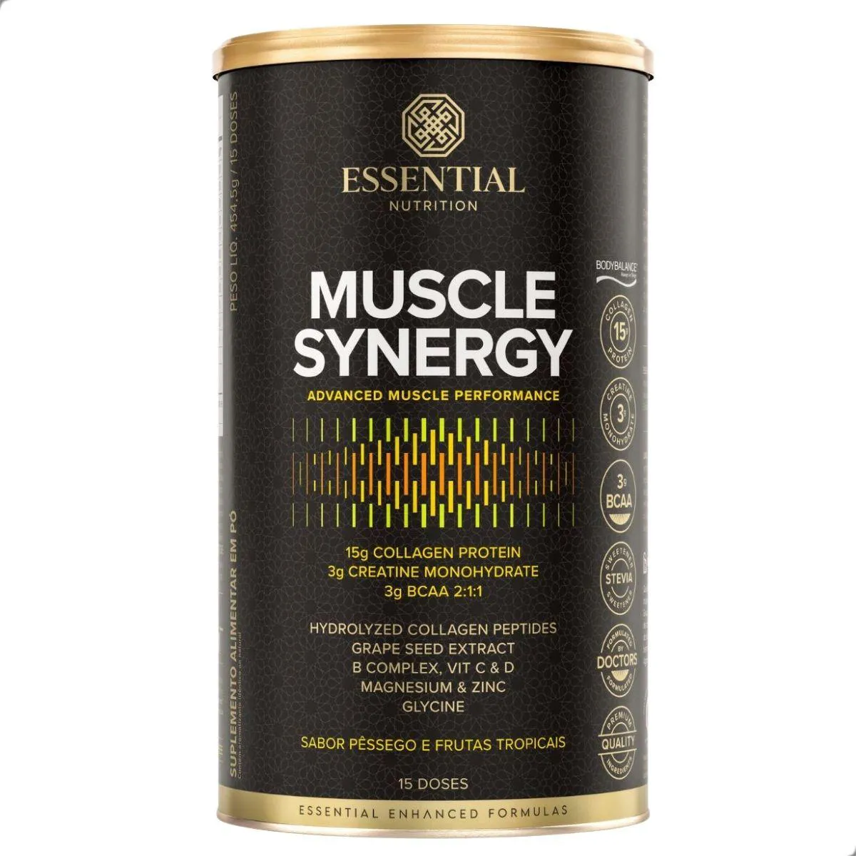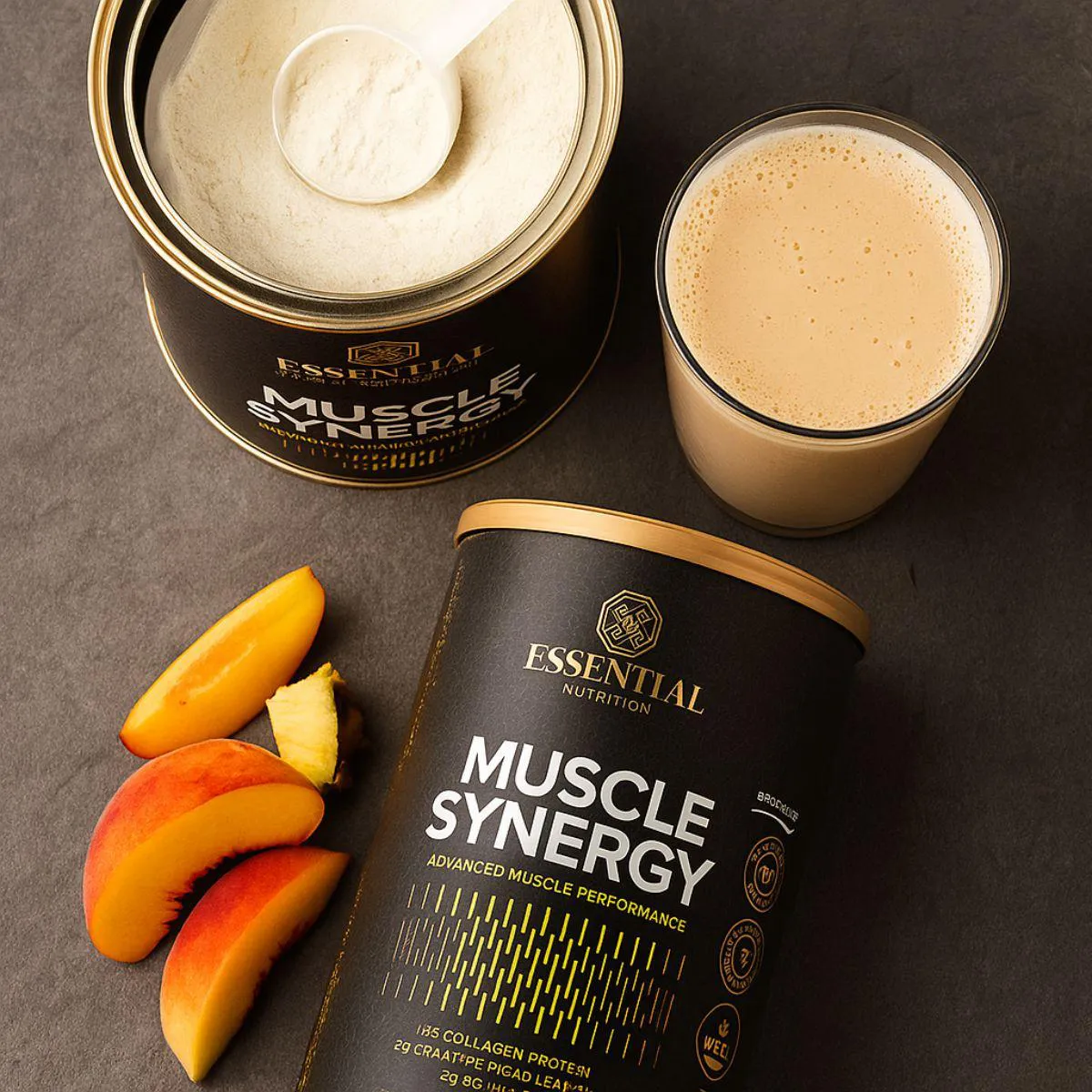 Body Collagen Protein Muscle Synergy da Essential Nutrition apresenta 454,5 g de um blend que combina colágeno hidrolisado e proteínas de alta digestibilidade. Elaborado para complementar a ingestão de aminoácidos, ele se destina a pessoas que buscam apoio nutricional para um estilo de vida ativo.