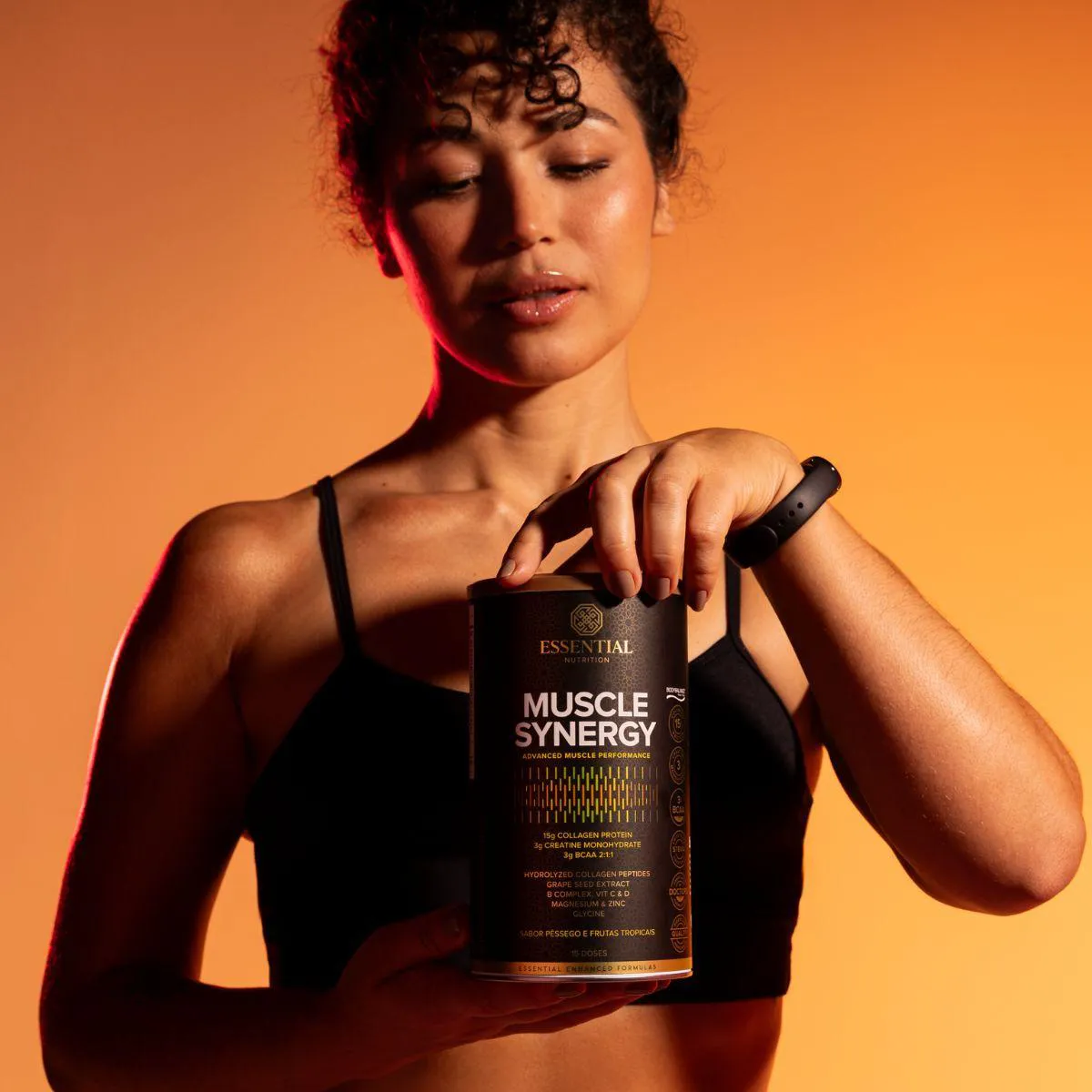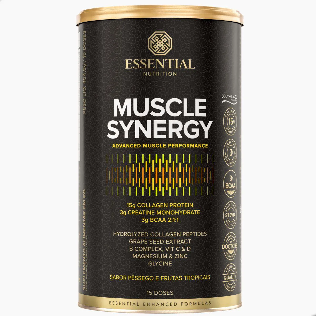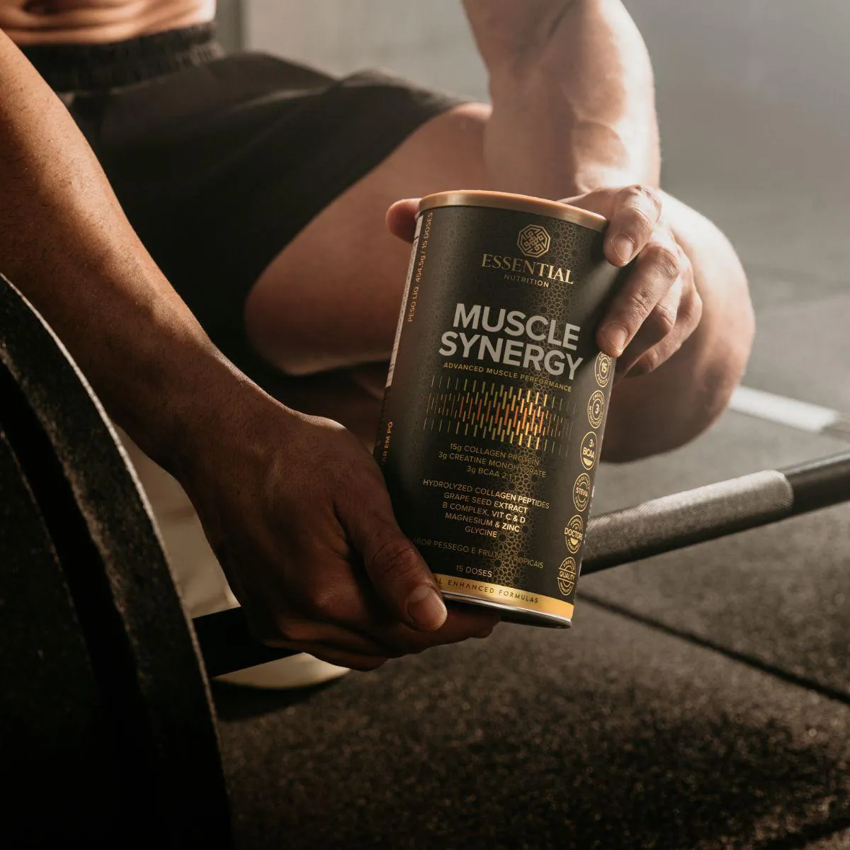 Body Collagen Protein Muscle Synergy da Essential Nutrition apresenta 454,5 g de um blend que combina colágeno hidrolisado e proteínas de alta digestibilidade. Elaborado para complementar a ingestão de aminoácidos, ele se destina a pessoas que buscam apoio nutricional para um estilo de vida ativo.