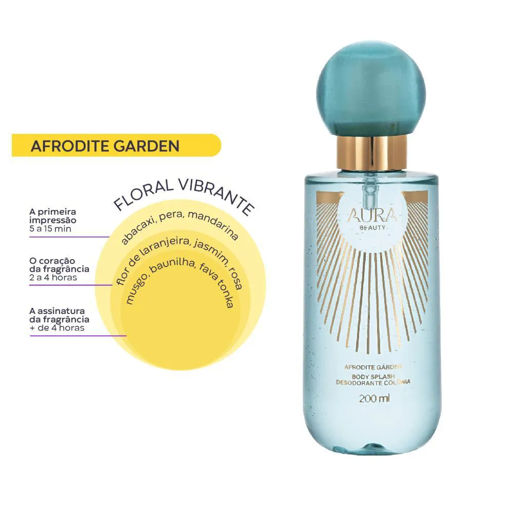Aplique o Afrodite Garden Body Splash diretamente sobre a pele, evitando rosto e mucosas. Reaplique ao longo do dia para manter a perfumação leve, vibrante e contínua.Composição: