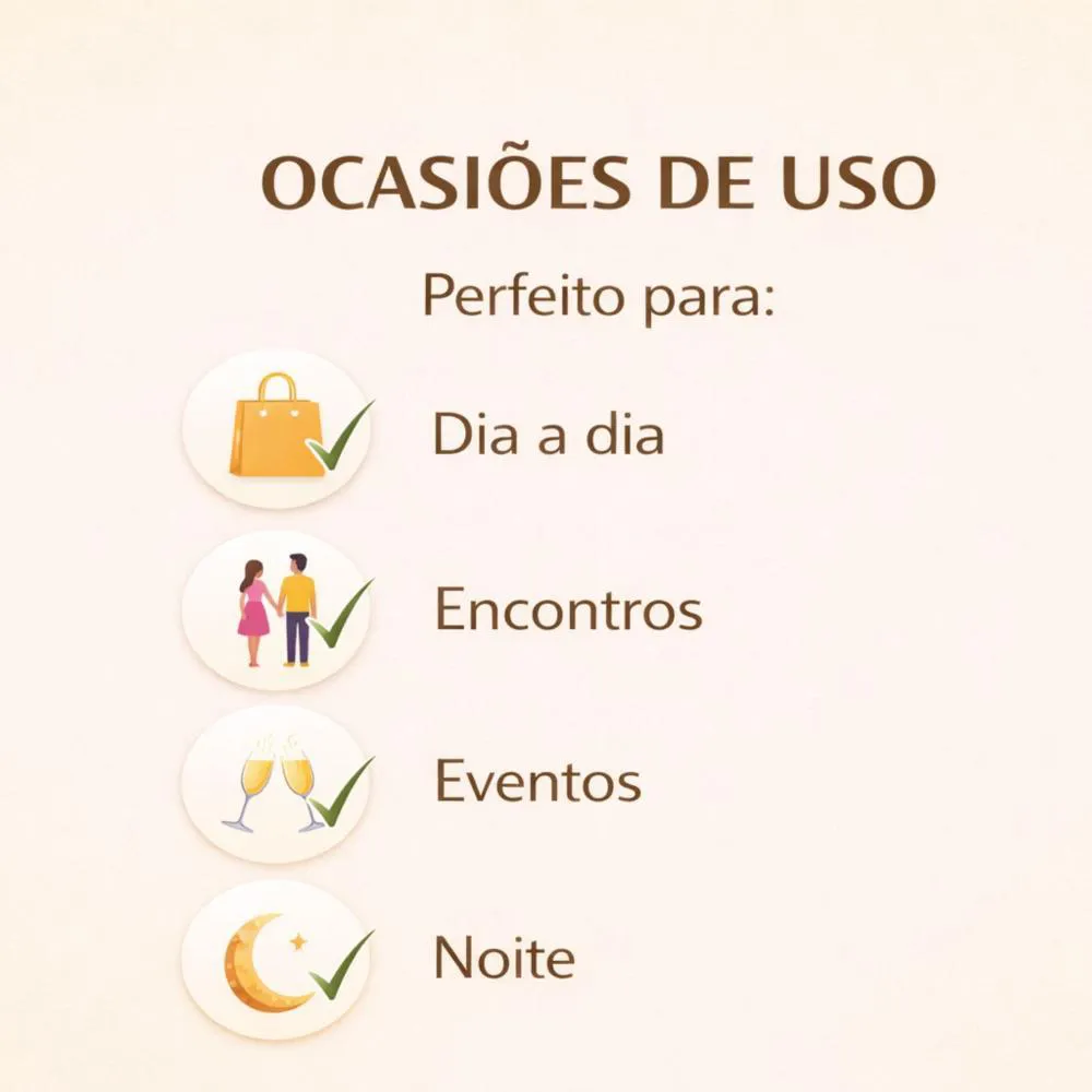 - Ideal para uso no dia a dia, encontros, eventos e à noite