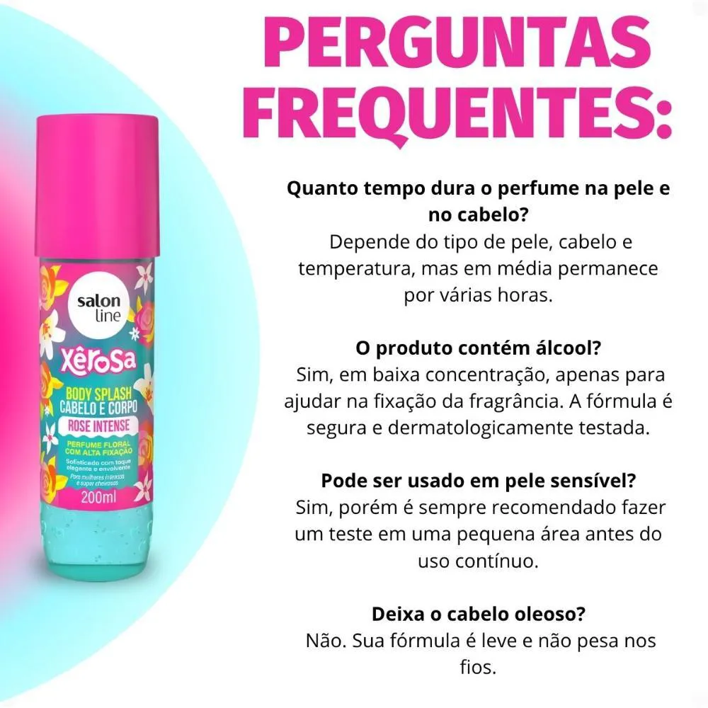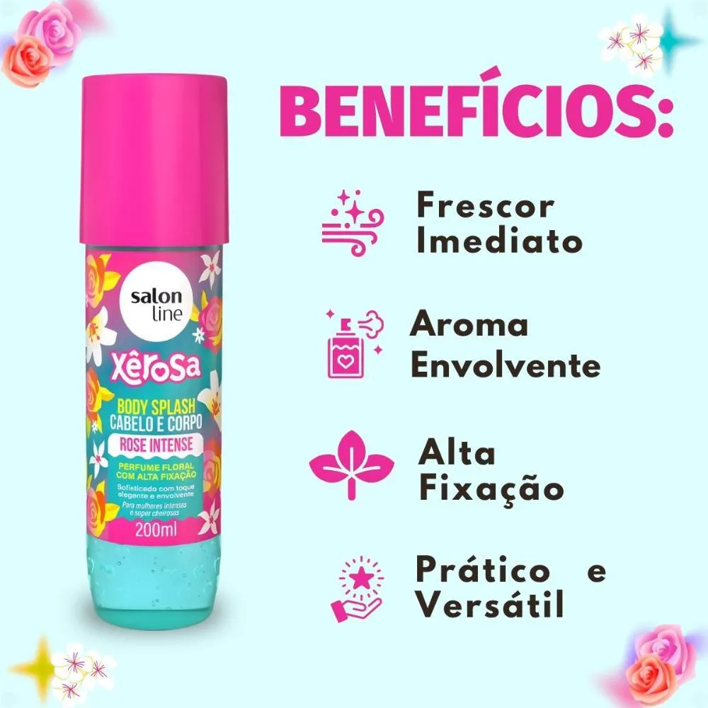 Fragrância floral cítrica exclusiva da linha Xêrosa Rose Intense, com um aroma floral de rosas.Versatilidade de uso, ideal para cabelo e corpo, otimizando sua rotina de beleza.Qualidade garantida pela SALON LINE, uma marca líder no mercado de cosméticos.Embalagem prática em frasco de 200ml, ideal para levar consigo.Ocasiões de Uso/Cenários Ideais