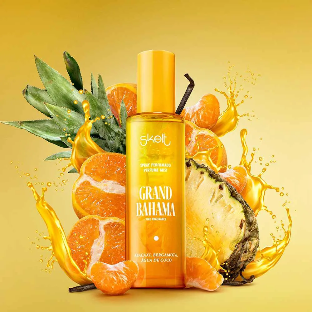 O Body Splash Skelt Grand Bahama é uma fragrância única, inspirada na essência exótica e solar das Bahamas. Desenvolvido para pessoas que buscam um tratamento olfativo, este spray traz a sensação refrescante das frutas do verão, transportando você a um ambiente de luxo e paisagens deslumbrantes. Ideal para quem deseja transformar sua visão de mundo e elevar seu estado emocional através de uma experiência sensorial incomparável.