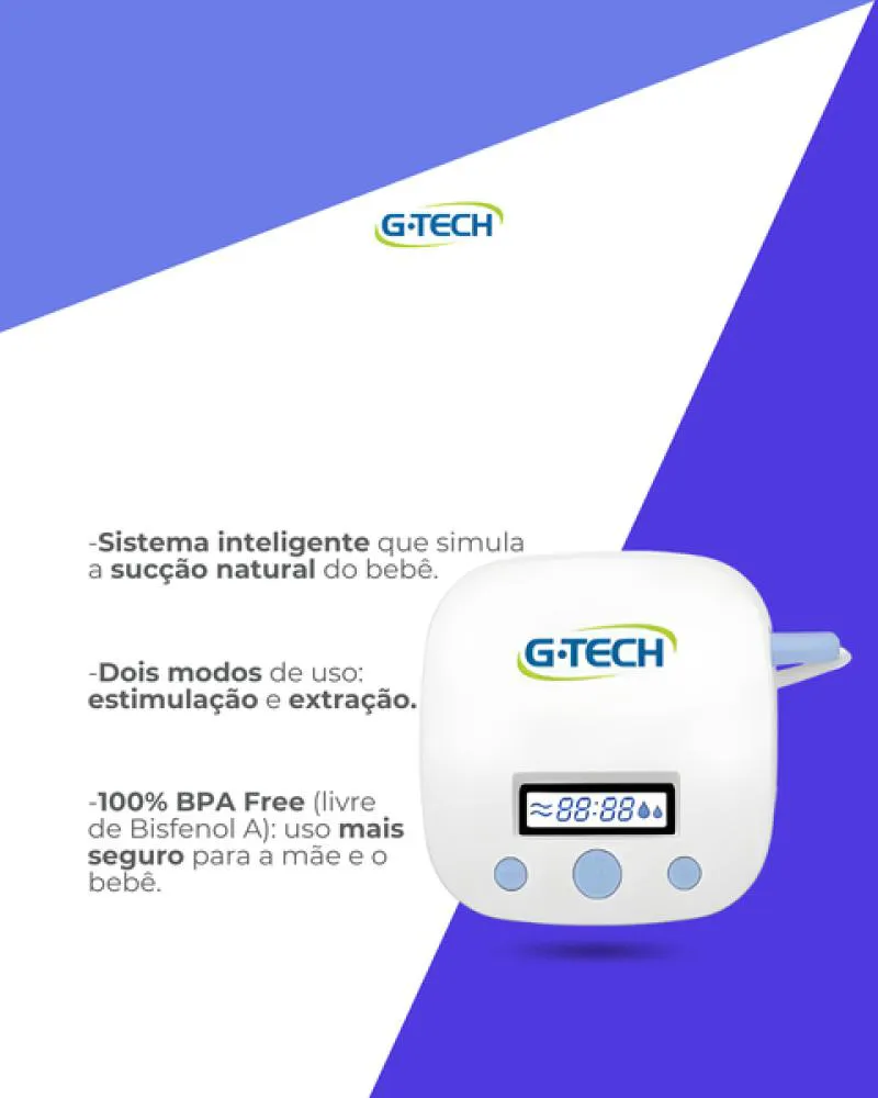 Bomba tira leite Materno Automática Smart LCD G-Tech As Bombas tira leite materno da G-Tech são ideais para as mães que procuram uma solução simples e confortável para auxiliar a retirada de leite materno. Desenvolvidas com materiais de excelente qualidade e alta performance, permitem uma retirada de leite satisfatória, sem causar dor ou incômodo à lactante. Criada para auxiliar as mães a extraírem o leite materno com maior conforto e conveniência. Ela é leve, portátil e de simples montagem: basta ligar na tomada para usar a qualquer momento e em qualquer lugar. O sistema inteligente da G-Tech Smart LCD possui os modos estimulação e extração, simulando a sucção natural do bebê. Isso oferece maior conforto à mulher na hora da extração, além de estimular a produção natural de leite materno. Seu exclusivo visor em LCD facilita o controle dos 9 níveis de intensidade, permitindo uma melhor adaptação durante o uso. Assim, a extração de leite se torna um ato menos incômodo e mais simples, para que a mulher perca menos tempo e possa se dedicar ao que realmente importa: ser mãe. -Sistema inteligente que simula a sucção natural do bebê-Dois modos de uso: estimulação e extração-Fácil seleção dos modos de funcionamento em um prático visor LCD-Unidade de controle externo: mais conveniência e leveza no uso-9 (nove) níveis de intensidades de extração e 5 (cinco) níveis de estimulação-Capa massageadora em silicone com sensação delicada no toque-100% BPA Free (livre de Bisfenol A): uso mais seguro para a mãe e o bebê