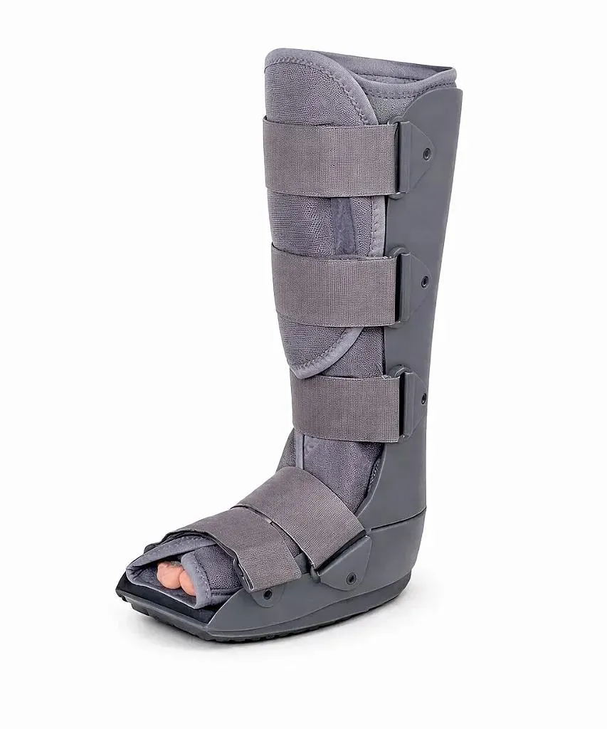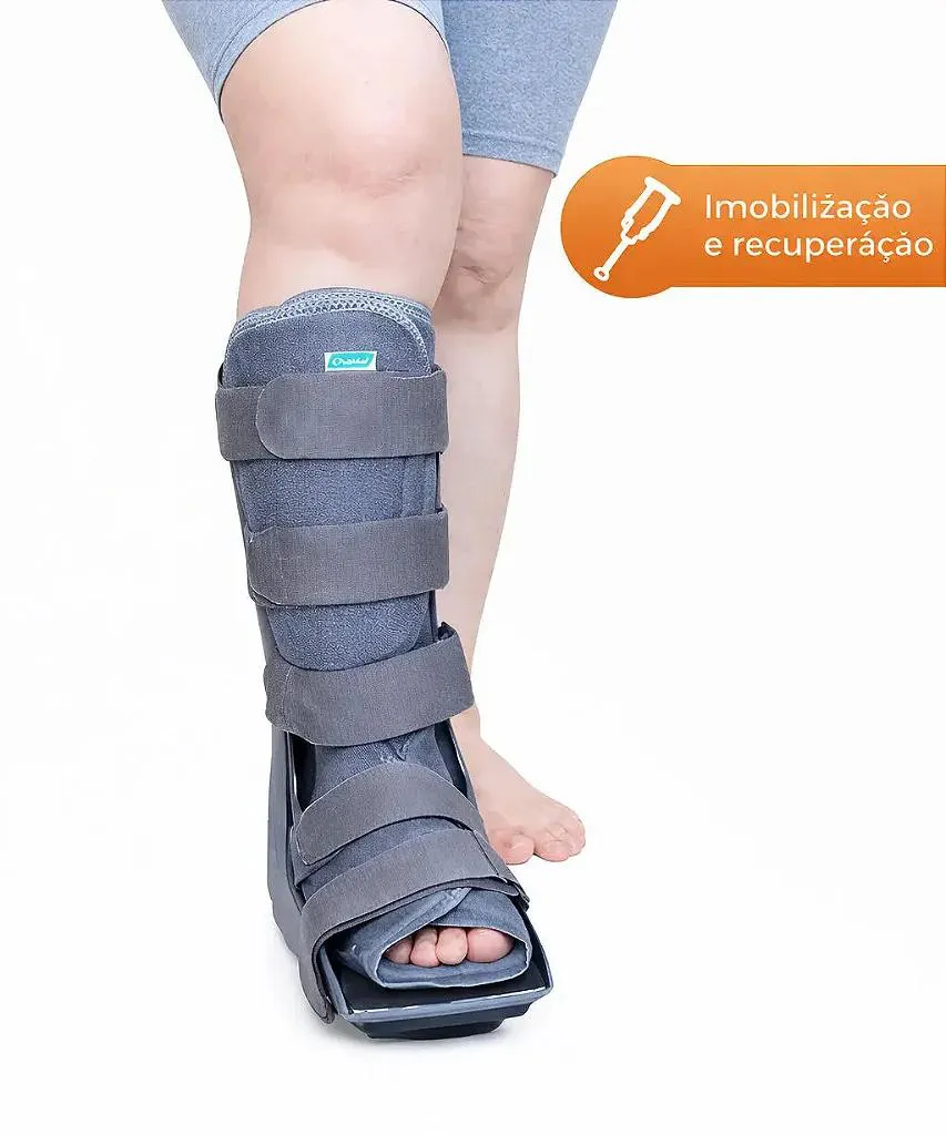 A Bota Imobilizadora Robocop Longa Cinza (C7093CZ) foi desenvolvida para promover imobilização total e segura do tornozelo e do pé em casos de fraturas e outras lesões ortopédicas que exigem restrição completa dos movimentos. Conforme indicação médica, pode substituir o gesso suropodálico, oferecendo mais conforto, praticidade e facilidade no acompanhamento do tratamento. Sua estrutura rígida em polipropileno garante excelente estabilidade e proteção, enquanto o conjunto interno com forro acolchoado de 15 mm, palmilha em EVA macio e protetores para a região maleolar proporciona conforto mesmo durante uso prolongado. O solado anatômico contribui para maior equilíbrio e segurança durante a marcha, auxiliando o paciente no deslocamento diário. O fechamento em Velcro® de alta aderência permite ajuste preciso e posicionamento adequado, facilitando a colocação e remoção. O modelo é bilateral (serve no pé direito ou esquerdo) e é lavável, contribuindo para melhor higiene ao longo do tratamento.Indicações